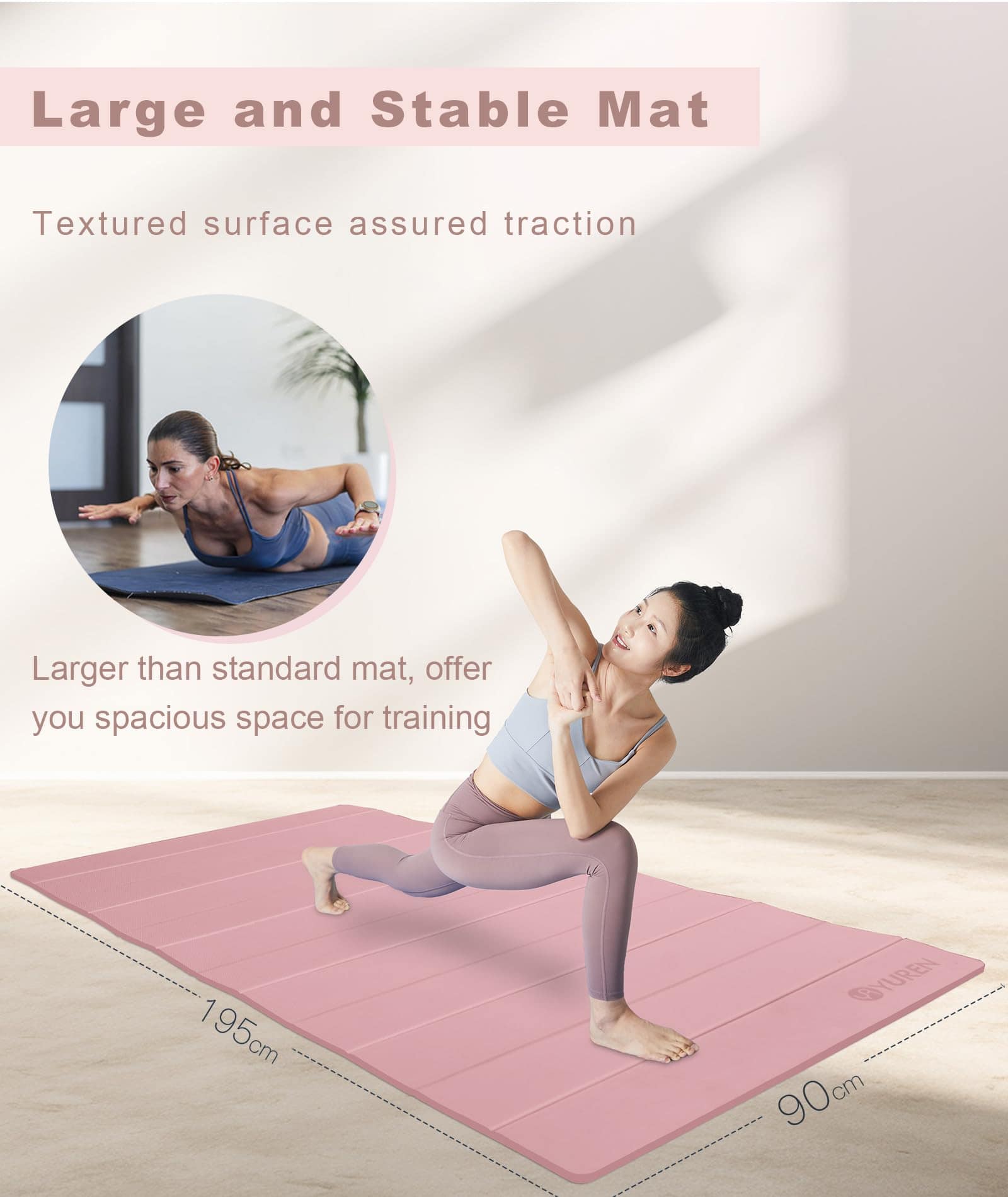 1. Tapete de Yoga Plegable Grande: El tapete grande mide 76.7 x 35.4 pulgadas y te brinda suficiente espacio para todo tipo de ejercicios en el suelo, además de que su diseño de acordeón lo hace compacto y fácil de desplegar y plegar.