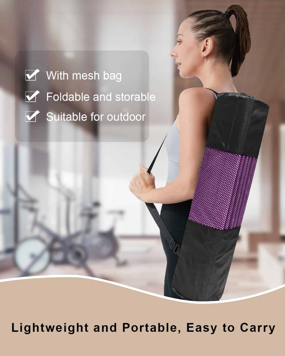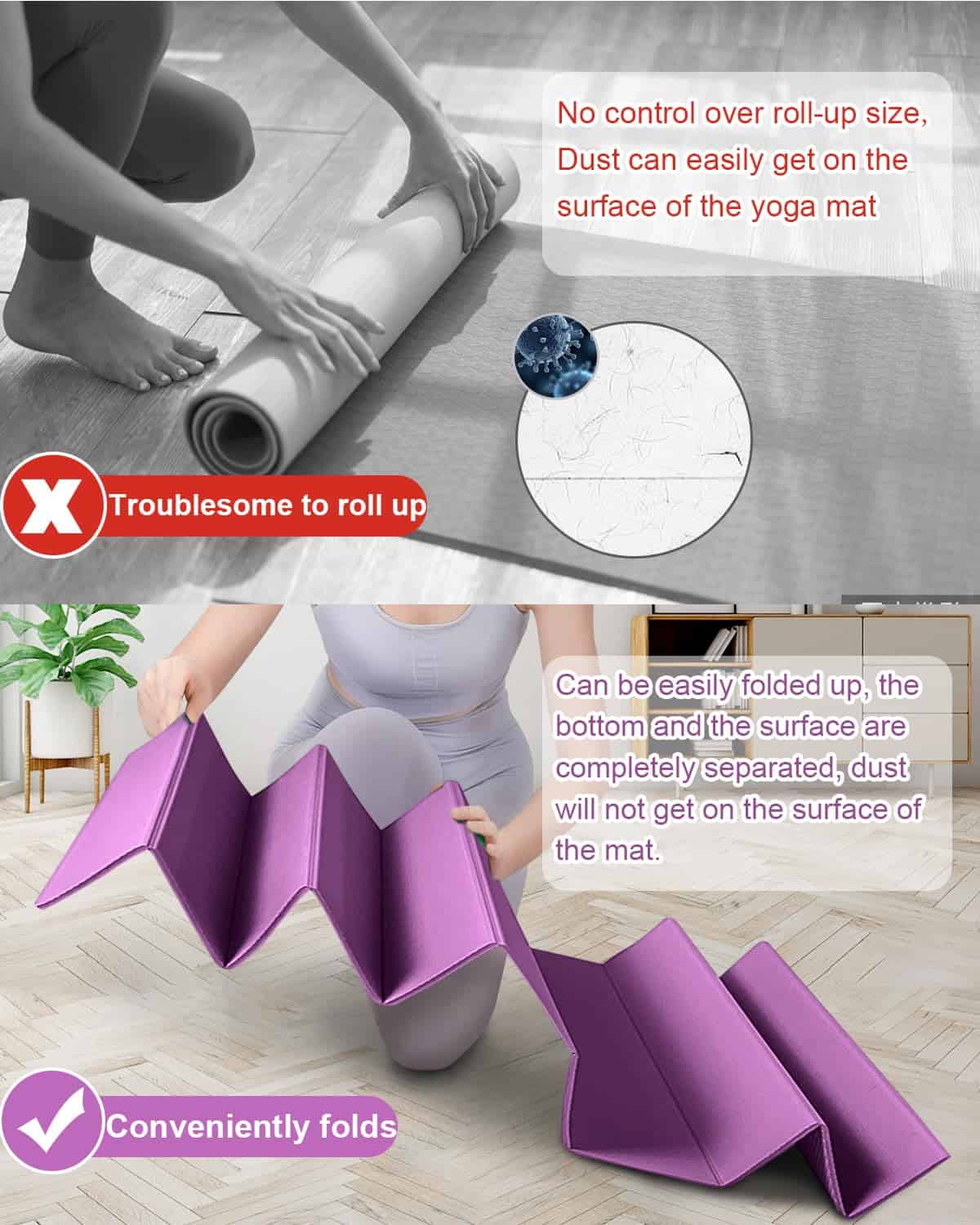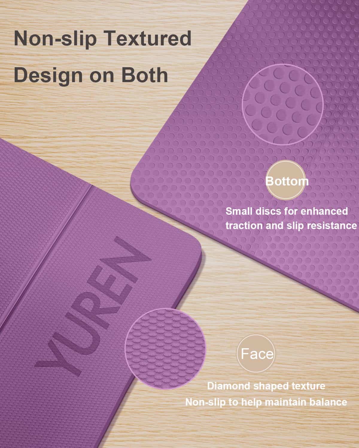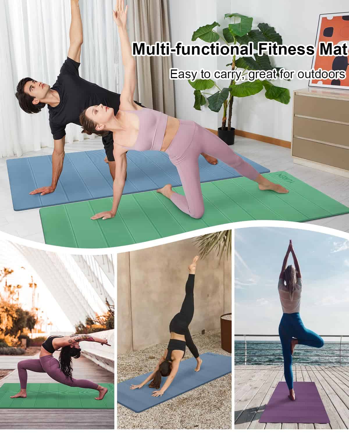 1. Tapete Grande y Grueso: Tapete de yoga de 2/5 pulgadas de grosor que proporciona una mejor amortiguación. Más ancho que un tapete estándar, mide 72 x 31 pulgadas, ofreciéndote suficiente espacio para diferentes entrenamientos de poses. 2. Tapete Cómodo y Duradero: El tapete está hecho de material TPE, que es ecológico, ligero y duradero. El grosor adicional añade amortiguación, lo que lo hace sentir cómodo y proporciona un soporte adecuado al cuerpo. 3. Superficie Texturizada Antideslizante: La superficie texturizada por ambos lados garantiza tracción al tiempo que evita resbalones en el piso. Perfecto para yoga caliente, abdominales o ejercicios de Pilates. 4. Fácil de Limpiar y Guardar: La superficie impermeable y el diseño plegable hacen que el tapete esté más limpio. Además, el tapete no requiere correas para mantenerlo en su lugar, se puede empacar fácilmente dentro de una mochila. 5. Plegable y Ligero: El tapete de ejercicio se dobla fácilmente y se abre completamente plano sin enrollarse. Pesa 3.3 libras, portátil para llevar, ideal para tus actividades de viaje, gimnasio, estudio, parque o playa.