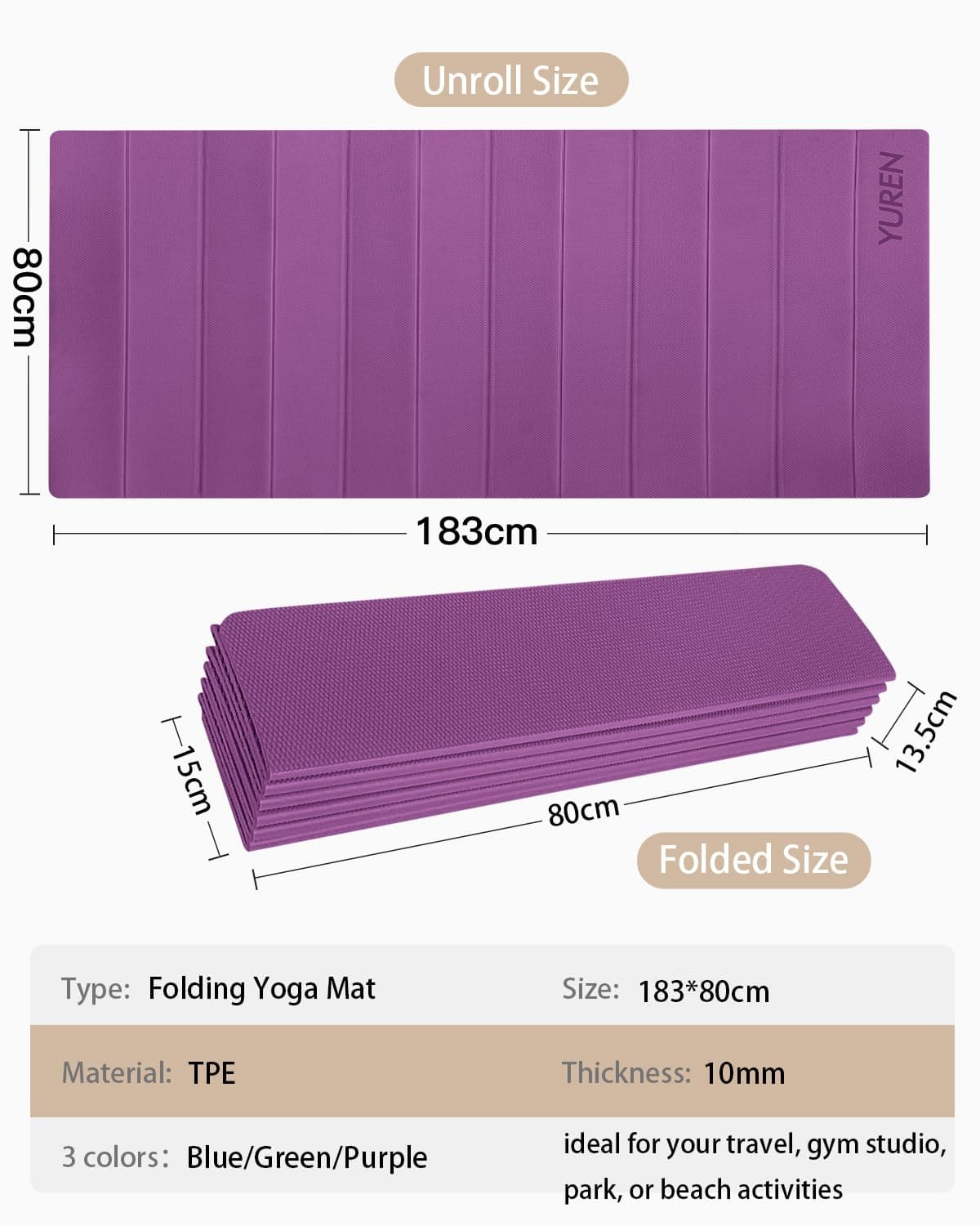 Tapete de Yoga Plegable RYTMAT de 10mm de -Morado