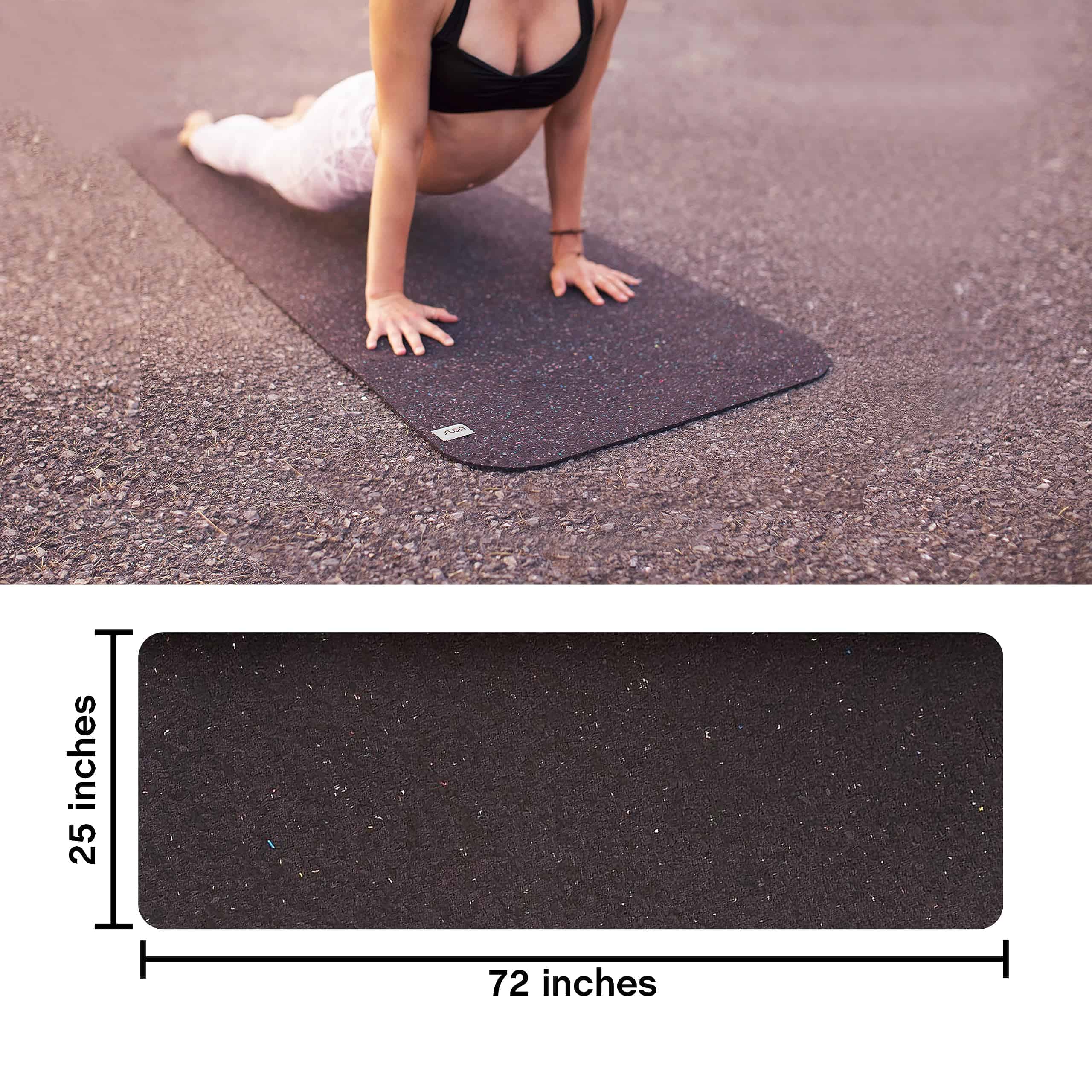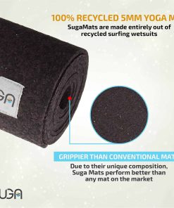 1. Tapete de yoga 100% reciclado de 5 mm: Los SUGA Mats están hechos completamente de trajes de neopreno de surf reciclados. Son cerrados en bucle, completamente reciclables al final de su vida útil.
