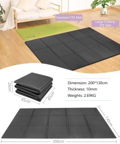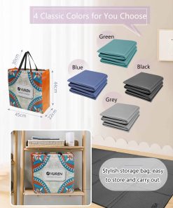 Tapete de yoga RYTMAT grueso de 10 mm plegable, tapete de gimnasio extra grande 6’x4′ extra ancho, tapete antideslizante de TPE para yoga, pilates, cardio, equipo de ejercicio. Este tapete plegable grande y extra grueso mide 78.7×51 pulgadas y tiene un grosor de 10 mm, lo que brinda más espacio y libertad de movimiento, y ofrece suficiente amortiguación y soporte para tus articulaciones y cuerpo, garantizando una experiencia cómoda. El tapete de ejercicio está hecho de material TPE que es amigable tanto para humanos como para mascotas, y el material tiene una excelente resistencia, resistencia al desgarro y durabilidad. Es menos propenso a desgarrarse, agrietarse o desvanecerse en comparación con los tapetes hechos de otros materiales. Con un diseño antideslizante de doble cara, el lado de la piel es cómodo al tacto y antideslizante, la textura de puntos en la parte inferior ofrece más estabilidad y resistencia al deslizamiento. Este tapete te proporcionará tracción asegurada y evitará deslizamientos en el suelo durante tus ejercicios. Su característica única de plegado permite diferentes opciones de grosor, se puede utilizar para una variedad de ejercicios, incluyendo yoga, pilates, estiramientos, entrenamiento muscular y más. Es adecuado para todas las edades y niveles de aptitud física y se puede utilizar tanto en interiores como en exteriores. La superficie impermeable y el diseño plegable hacen que el tapete esté más limpio. Ligero y compacto para transportar, viene con una bolsa de almacenamiento, ideal para tus actividades de viaje, gimnasio, estudio, parque o playa. Su diseño compacto es especialmente beneficioso para aquellos con espacio limitado, como estudiantes universitarios en dormitorios o apartamentos.