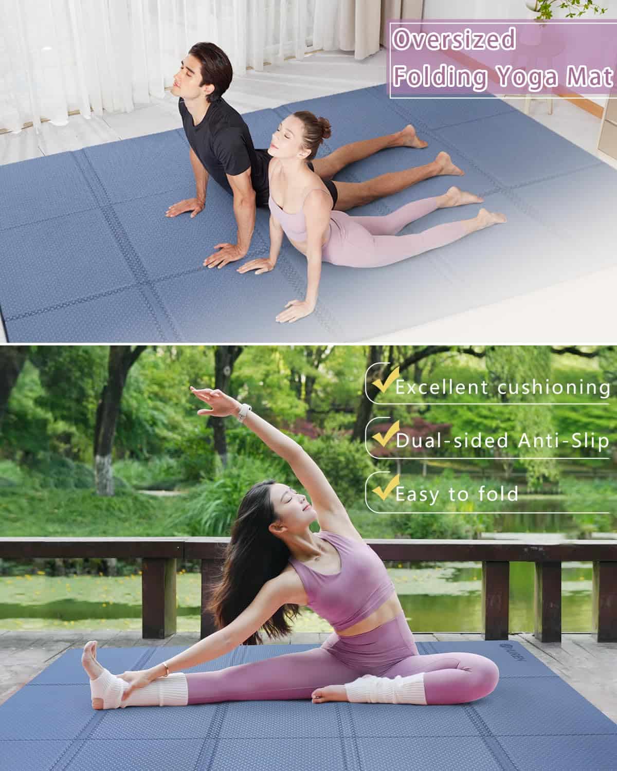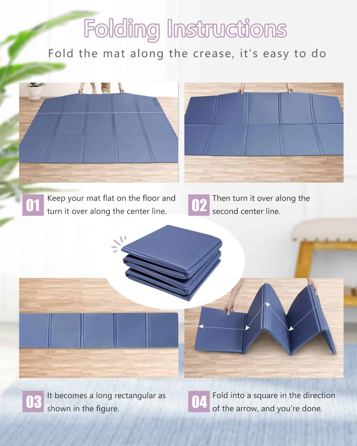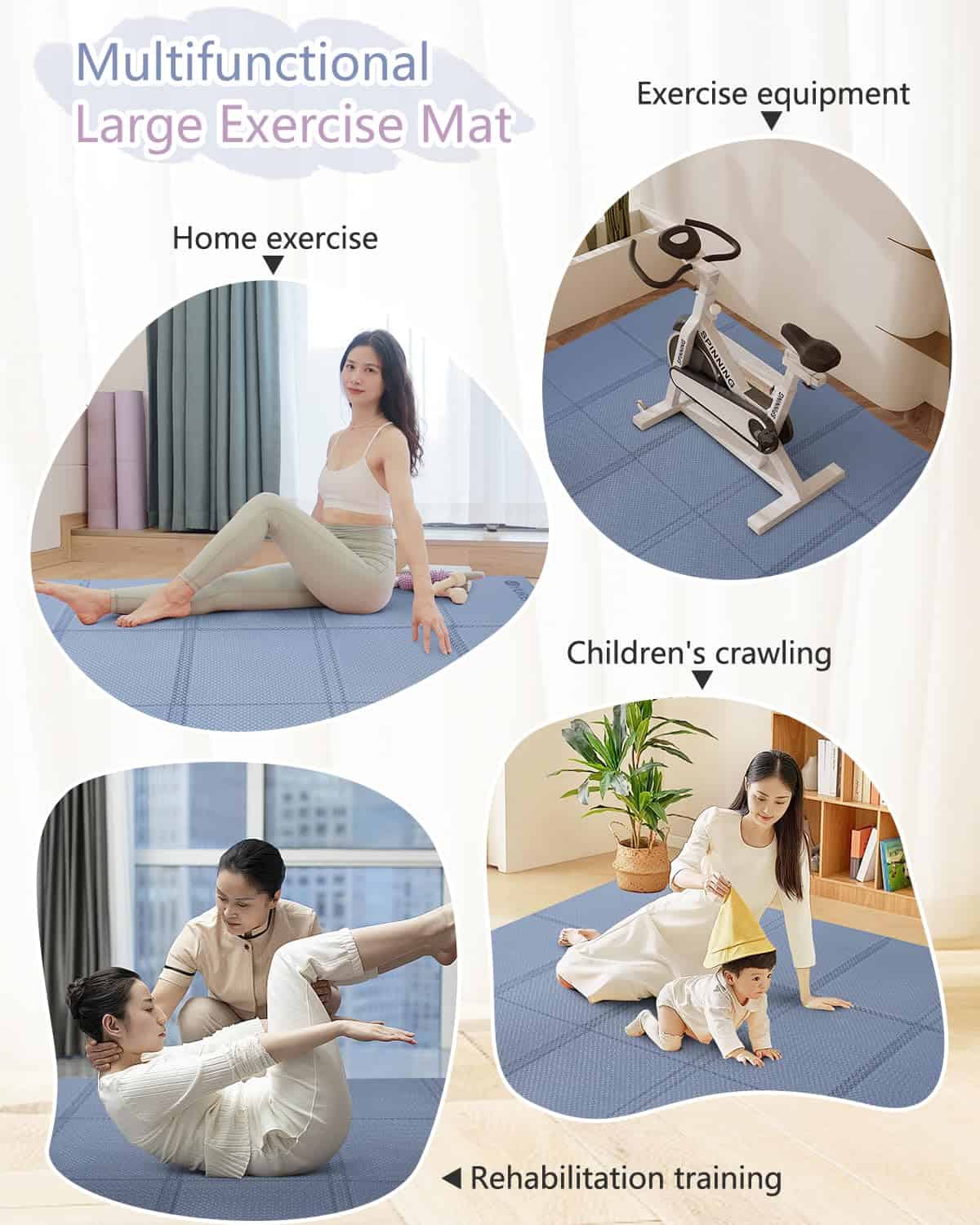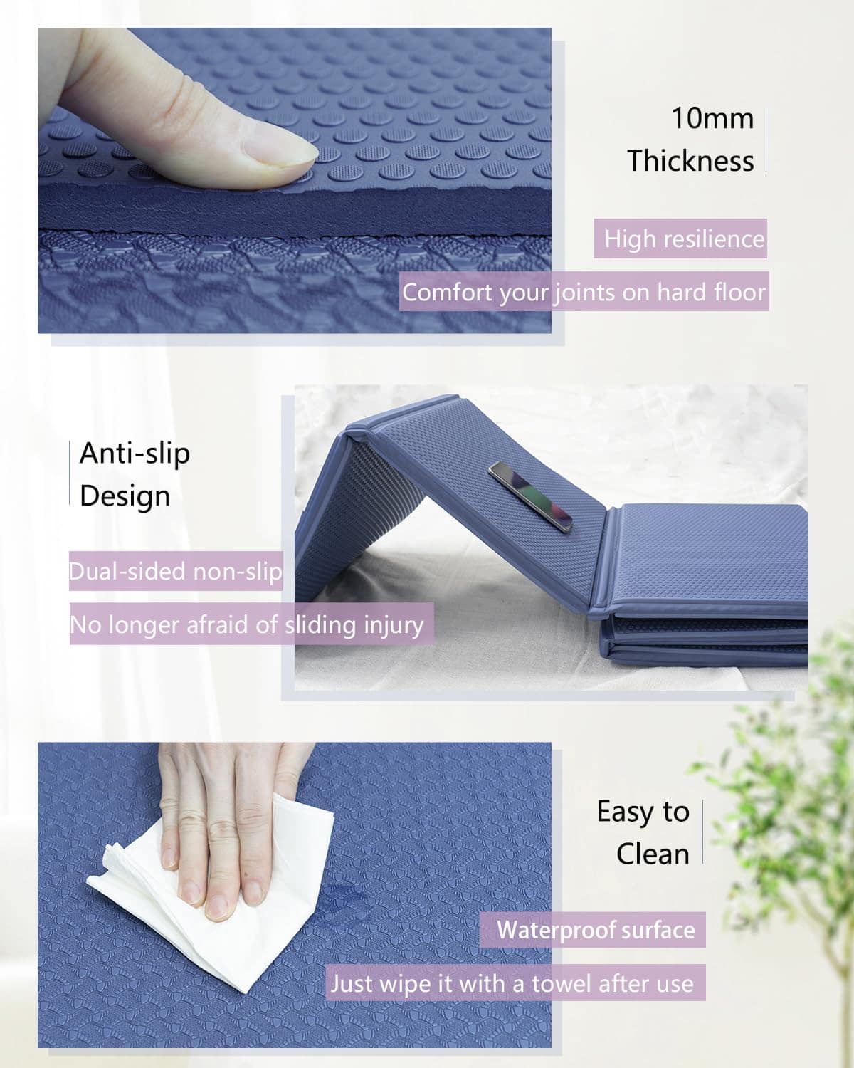 1. Tapete Plegable Grande Extra Grueso: El tapete plegable mide 78.7×51 pulgadas y su grosor es de 10mm, lo que proporciona más espacio y libertad de movimiento, y ofrece suficiente amortiguación y soporte para sus articulaciones y cuerpo, asegurando una experiencia cómoda.