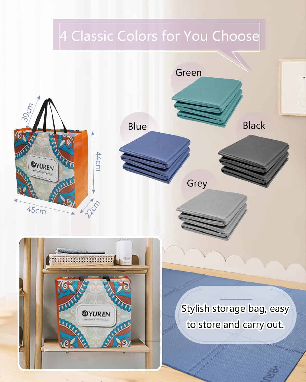 5. Tapete de Yoga de Viaje: La superficie impermeable y el diseño plegable hacen que el tapete esté más limpio. Ligero y compacto para llevarlo fácilmente, viene con una bolsa de almacenamiento, ideal para sus actividades de viaje, gimnasio, estudio, parque o playa. Su diseño compacto es especialmente beneficioso para aquellos con espacio limitado, como estudiantes universitarios en dormitorios o apartamentos.