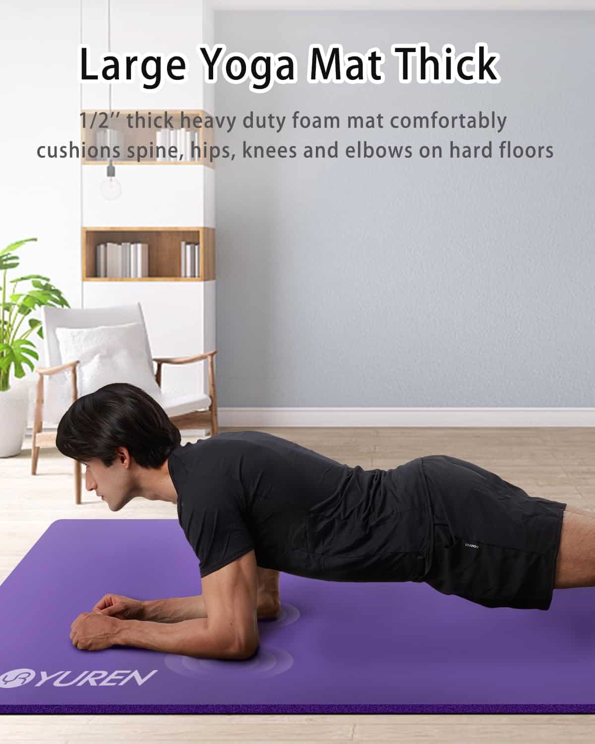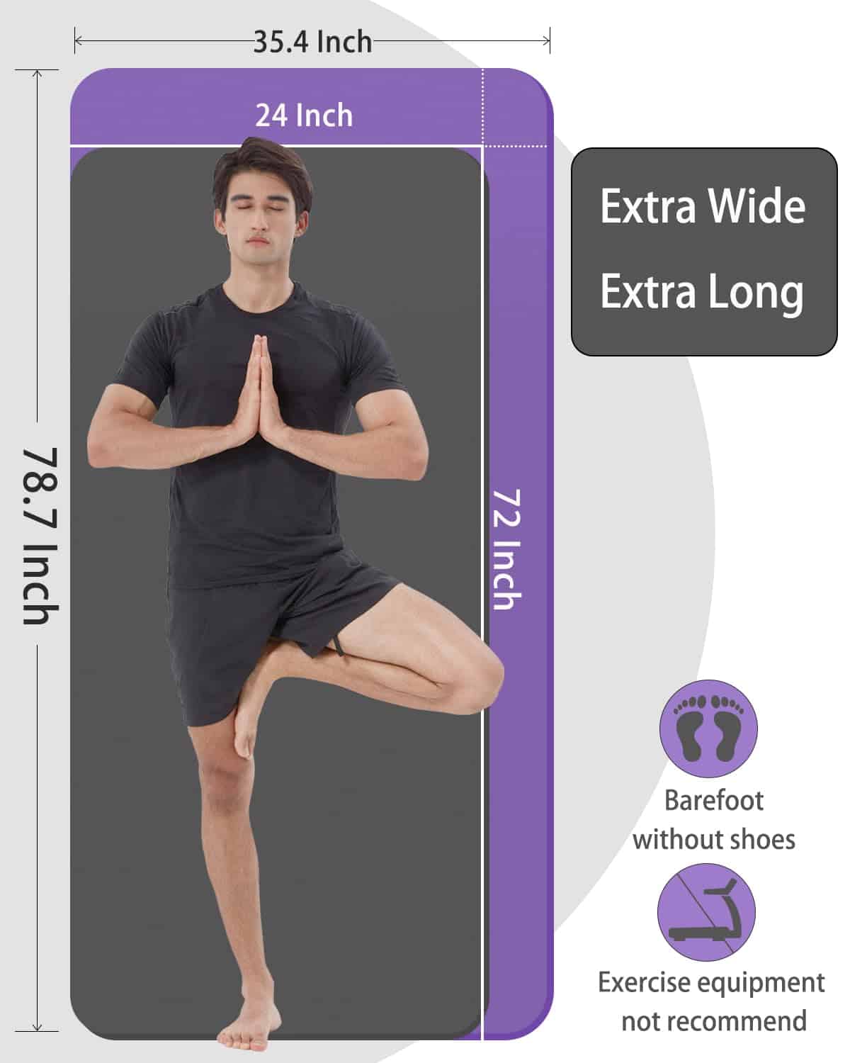 1. Tamaño Extra Grande: Tapete de ejercicio extra largo de 78.7″ y extra ancho de 35.4″ garantiza comodidad para personas altas. El espacio extra grande permite estirarse sin restricciones. Nota: Tapetes de la misma calidad con diferentes logotipos («YRYUREN» o «YR») se enviarán al azar.