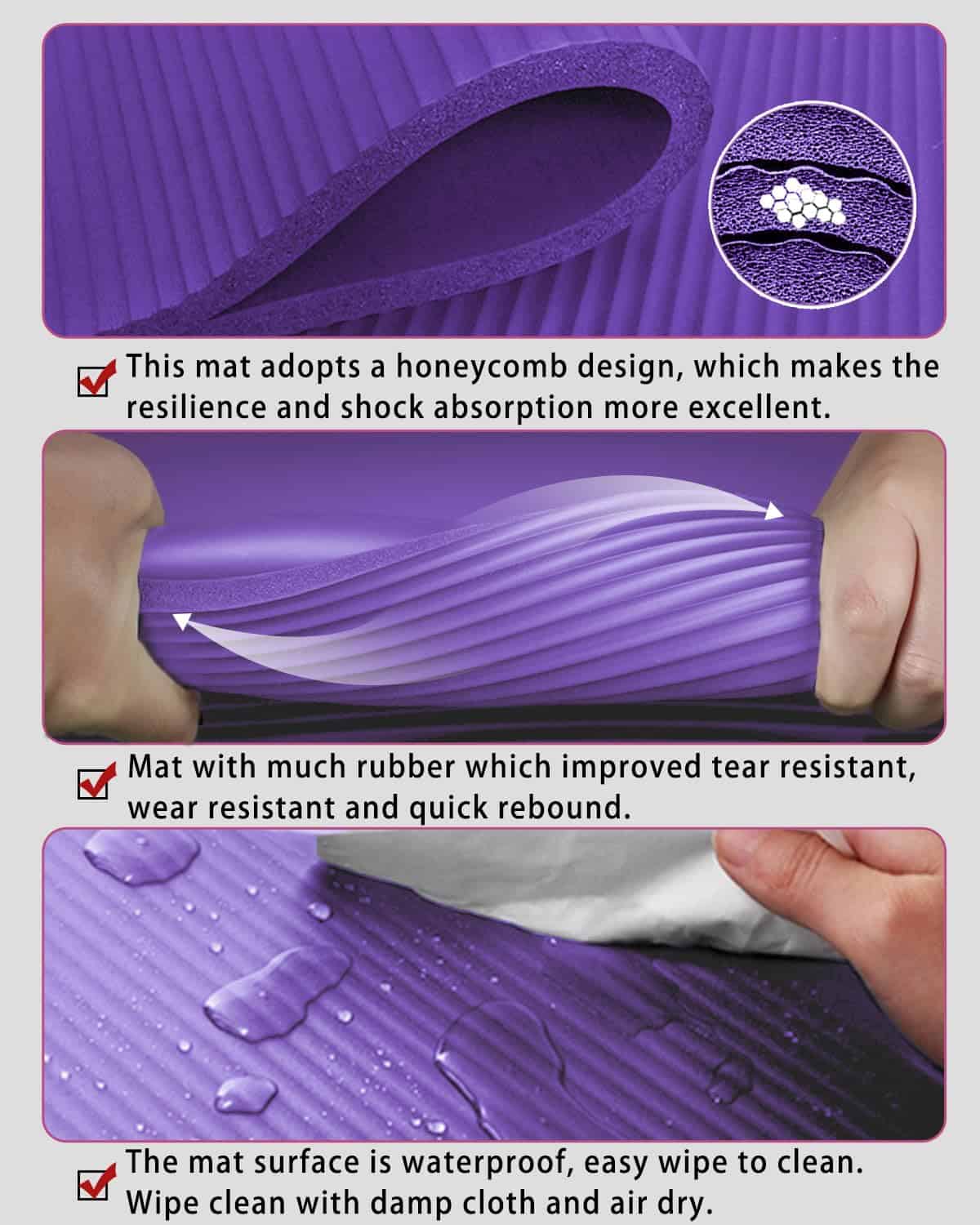 3. Material Premium de Espuma NBR: Este tapete de espuma con mucho caucho mejora la resistencia al desgarro, resistente al desgaste y rebote rápido. Puede haber un ligero olor a caucho que es seguro y no tóxico en su primer uso.