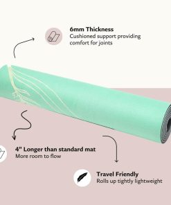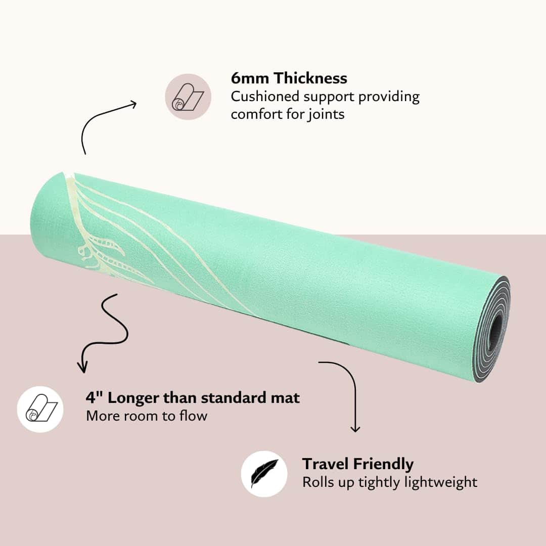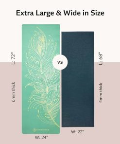 1. MÁXIMA COMODIDAD: ¡Transforma tu percepción de un encantador tapete de yoga o pilates! Experimenta un amplio apoyo en las articulaciones con un grueso cojín, junto con diseños vibrantes y dimensiones generosas de 72 pulgadas por 24 pulgadas por 6mm (todo mientras permanece ligero con 1.8 libras). Incluso podrías considerar despedirte de tus otros voluminosos tapetes de yoga. Para mujeres que buscan tapetes de fitness para entrenamientos sobre la marcha, se incluye una práctica correa de algodón para transportar.