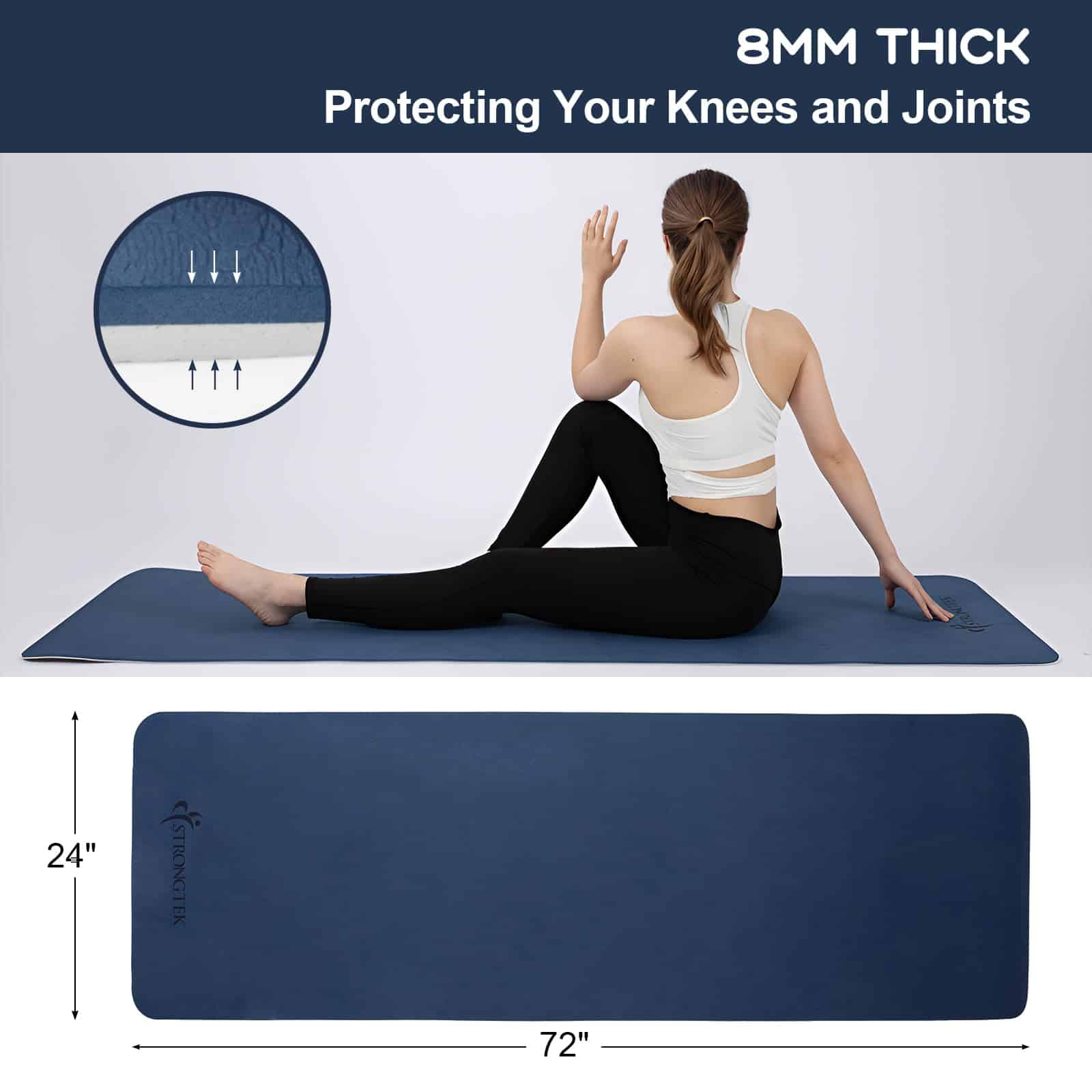 Tapete de Yoga StrongTek de TPE – 8mm de Grosor, 72″ x 24″,
