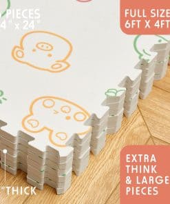 Tapete de juegos de espuma POSIKEDE con superficie de alfombra, incluye 6 baldosas de piso de espuma con patrón de animales blancos, 12 bordes y una bolsa de almacenamiento. Las baldosas de espuma entrelazadas miden 24 pulgadas x 24 pulgadas x 0.6 pulgadas. El tapete de espuma cubre hasta 24 pies cuadrados de espacio en el piso, el piso perfecto para el hogar, dormitorio, estudio, gimnasios, talleres o incluso centro de actividades para bebés. Puede usar más juegos de tapetes para cubrir áreas más grandes. Seguro y de alta calidad es el lema de POSIKEDE. Las baldosas de espuma están hechas de espuma EVA de alta densidad para un rendimiento más duradero. Los tapetes de espuma EVA para bebés cumplen con las normas de seguridad de productos de EE. UU. y la UE. Libre de BPA, LÁTEX, PVC, PLOMO, FORMALDEHÍDO y HVA. Producto 100% no tóxico y sin olor. El tapete de espuma para bebés EVA de POSIKEDE es duradero y su grosor de 0.6 pulgadas le brinda un mejor cojín mientras protege los pisos. El tapete de bebé para el piso de POSIKEDE tiene múltiples usos, cada piso es lo suficientemente resistente mientras proporciona un espacio acolchado. El piso de 0.6 pulgadas ofrece una superficie cómoda que absorbe los golpes; el piso de espuma se puede cortar para adaptarse a un tamaño personalizado. Además, la superficie de alfombra con patrón de animales proporciona más fricción y hace que las baldosas no se peguen a la piel. La bolsa de tapetes de juego puede contener el tapete de juego de baldosas de espuma y colocarse en cualquier lugar, garantizando la limpieza. Los tapetes de juego para bebés entrelazados POSIKEDE son fáciles de montar y expandir, cada pieza con diseños entrelazados que se conectan de forma rápida y sencilla y se separan. Es fácil de montar y las baldosas se bloquean entre sí de forma segura para que no se rompan cuando se usan. Cada tapete de piso está especialmente fabricado para garantizar protección contra superficies ásperas y duras. Tu pequeño puede gatear, rodar y hacer tiempo boca abajo a su manera. POSIKEDE consideró cada faceta al diseñar este tapete de juegos infantiles con patrón de animales blancos, y te gustará cada minuto de su uso. Si tú o tu bebé no están 100% satisfechos con este nuevo tapete de espuma para bebés, te reembolsaremos por completo. Esperamos mucho recibir tus sugerencias para el último tapete de juegos para niños, continuaremos mejorando nuestros productos basados en tus sugerencias, y POSIKEDE espera brindar la mejor experiencia a cada cliente.