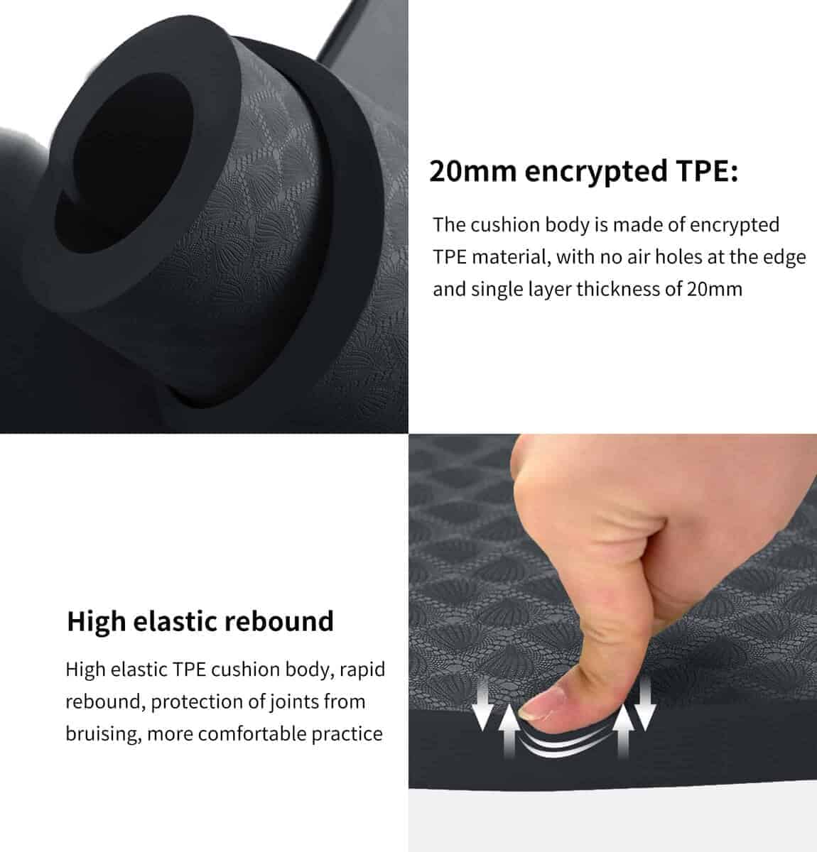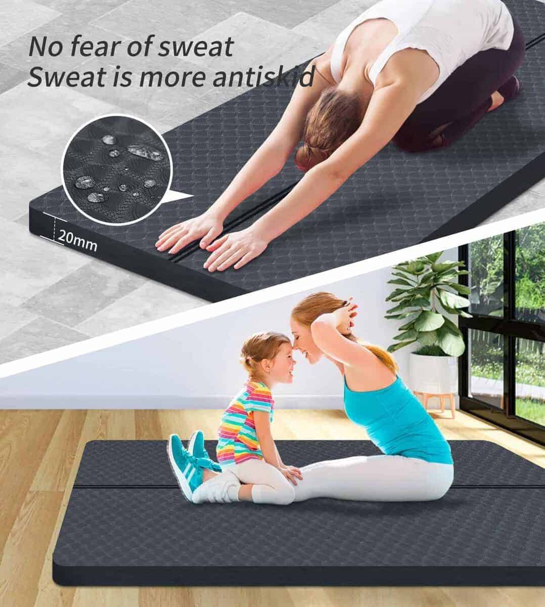 4. EXTRA LARGO EXTRA ANCHO: 72″x32″/78″x36″ de nuveti ofrece espacio adecuado para cualquier tipo de ejercicio como yoga, pilates, bikram y ejercicio de fitness. La mayoría de los tapetes de yoga en el mercado tienen 6mm, 8mm o incluso más delgados. Este tapete de yoga se espesa a 15mm,20mm,30mm que puede proporcionar más soporte y protección para tus tobillos, rodillas, articulaciones y cuerpo en suelos duros, además de absorber vibraciones y reducir ruido.