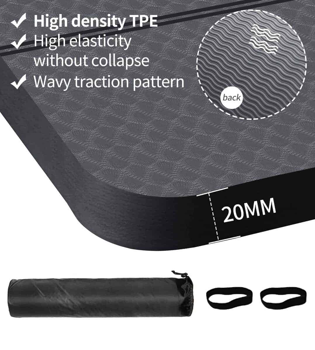 2. SUPERFICIE ANTIDESLIZANTE PARA MAYOR ESTABILIDAD: El tapete extragrande tiene una superficie texturizada para mejorar la tracción para que puedas realizar cualquier movimiento con confianza. El diseño antideslizante ayuda en el equilibrio para mantener las posturas durante mucho más tiempo y proteger tus articulaciones y rodillas sin comprometer el soporte o la estabilidad.