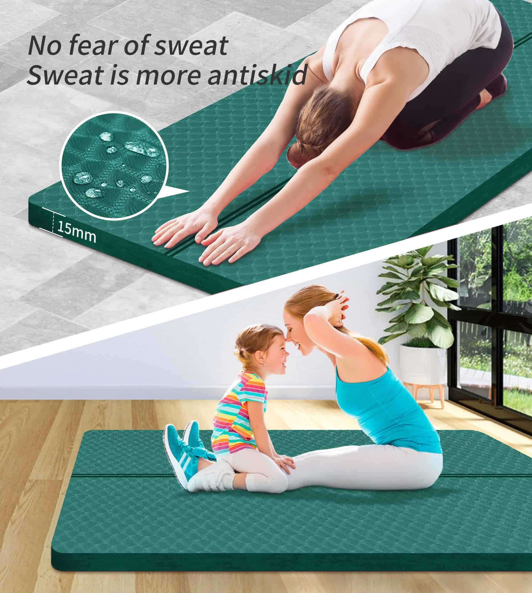 2. SUPERFICIE ANTIDESLIZANTE PARA MAYOR ESTABILIDAD: El tapete extragrande tiene una superficie texturizada para mejorar la tracción, permitiendo realizar cualquier movimiento con confianza. El diseño antideslizante ayuda a mantener el equilibrio para sostener posturas por mucho más tiempo y proteger las articulaciones y rodillas sin comprometer el soporte o la estabilidad.