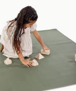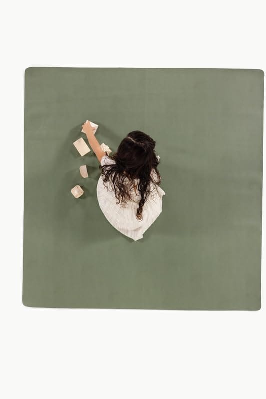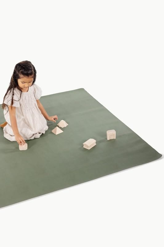 2. Limpiable e impermeable: Este tapete para bebés se limpia con un paño. O con la manguera, o con el océano, o realmente con lo que tengas a mano porque nadie necesita más ropa sucia. Agita la arena, enjuaga el barro, cepilla el agua y listo. Este tapete de cuero puede usarse en cualquier lugar donde quieras agregar belleza y minimizar el desorden.