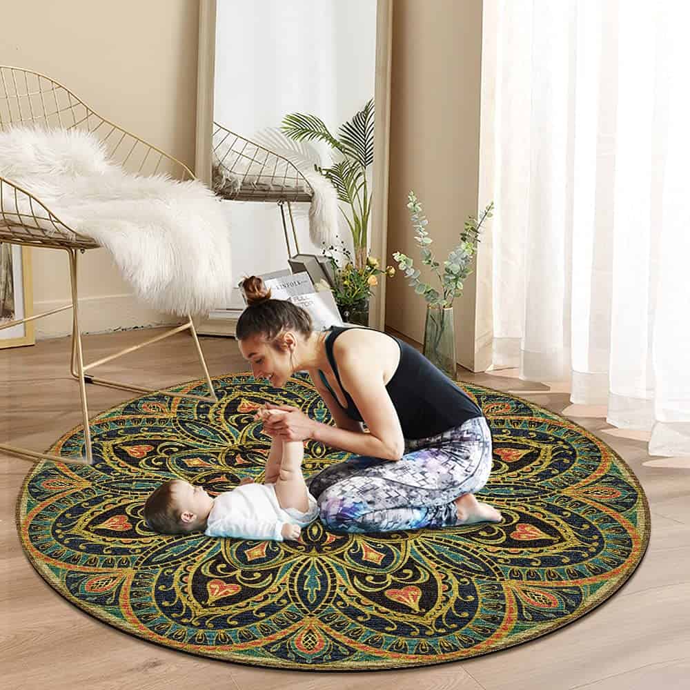 2. Tamaño extra: diámetro de 4.6′ (140cm), nuestro tapete redondo extra grande proporciona ultra comodidad y soporte, puedes disfrutar de tu meditación o yoga libremente y no preocuparte por el tamaño limitado del tapete tradicional. Con 3.5mm de grosor, es perfecto para soportar tus tobillos en la práctica, alivia las articulaciones doloridas y los ligamentos adoloridos durante tu ejercicio.