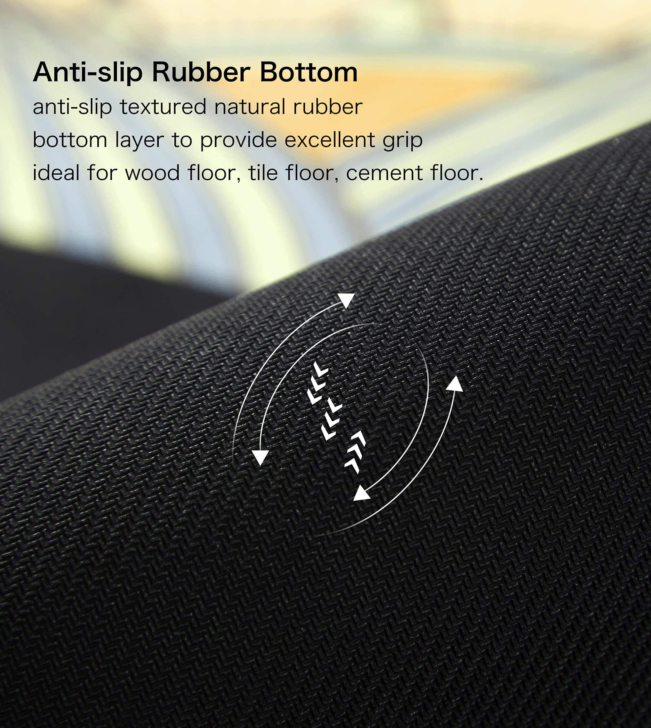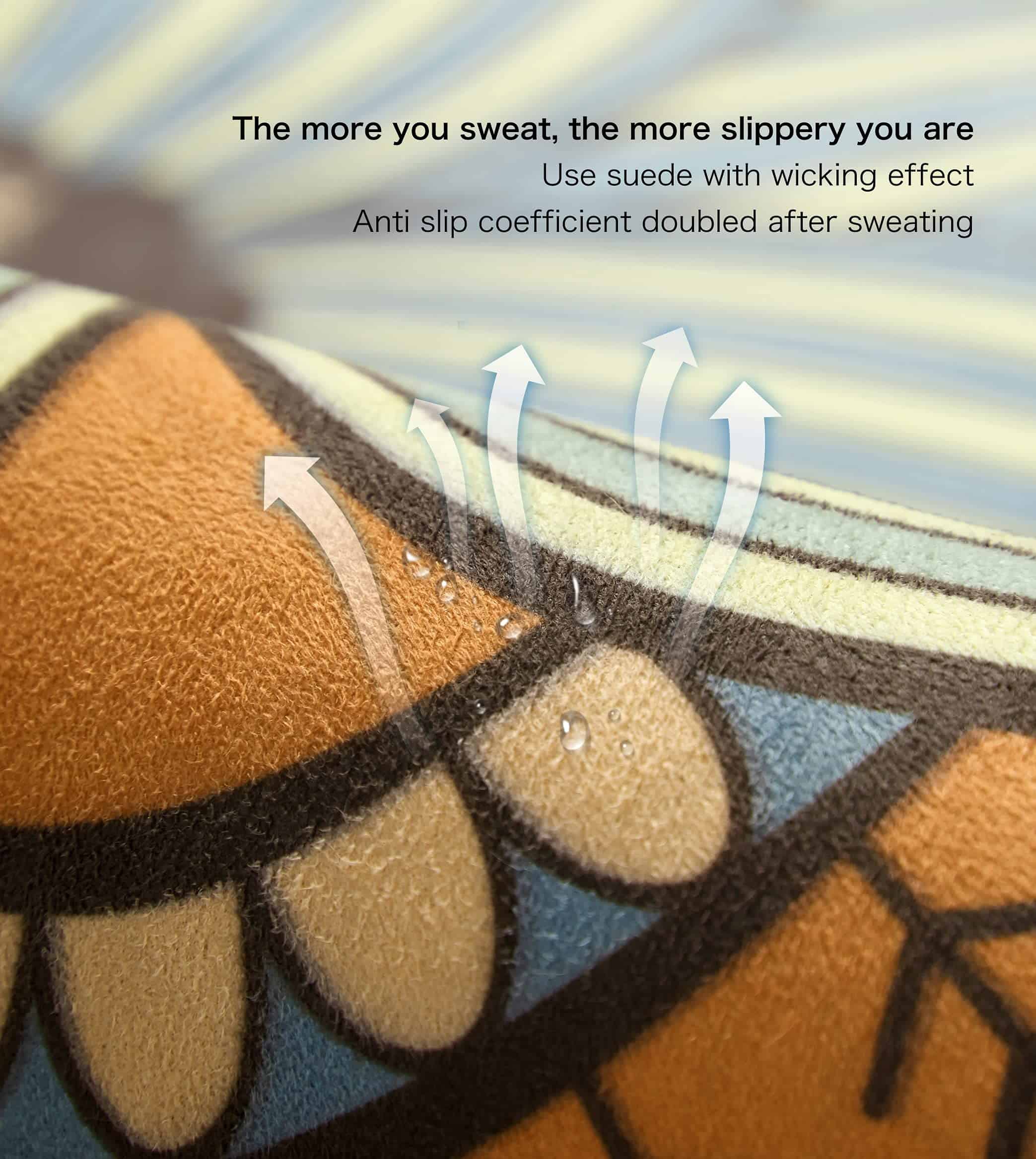 3. Doble superficie antideslizante: la superficie de gamuza sintética puede absorber el sudor o el agua al instante. Y dado que la parte inferior del tapete está hecha de caucho natural, es antideslizante y fácil de transportar. No se resbala en piso de madera, piso de baldosas, piso de cemento. La textura antideslizante pegajosa de doble cara del tapete proporciona una excelente tracción y agarre superior, lo mejor adecuado para practicar muchas formas de yoga.