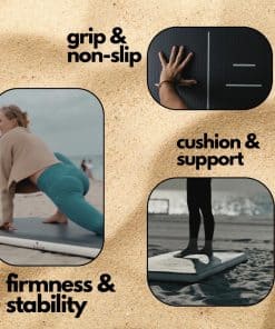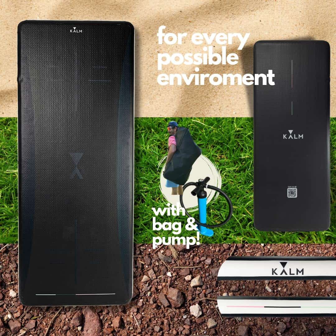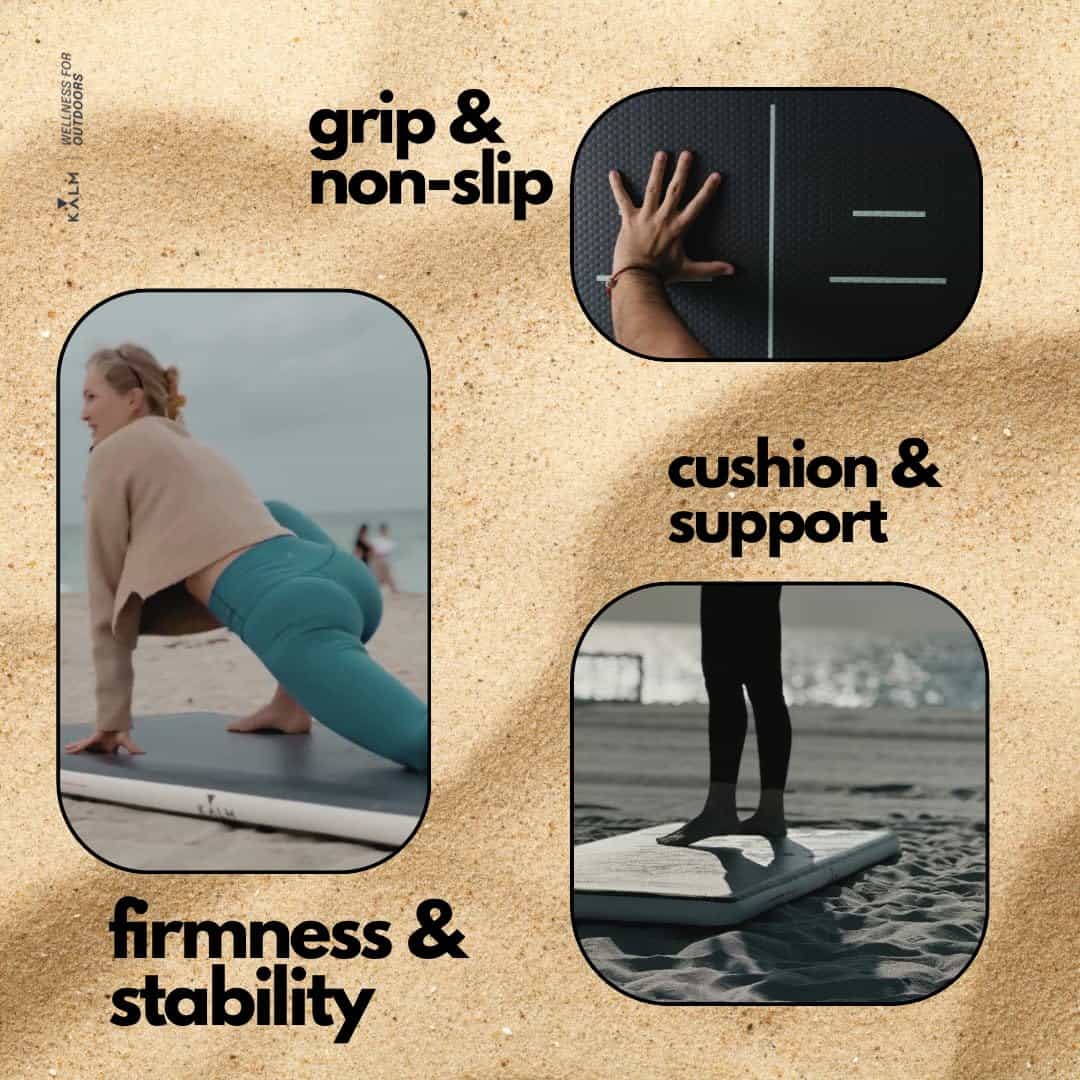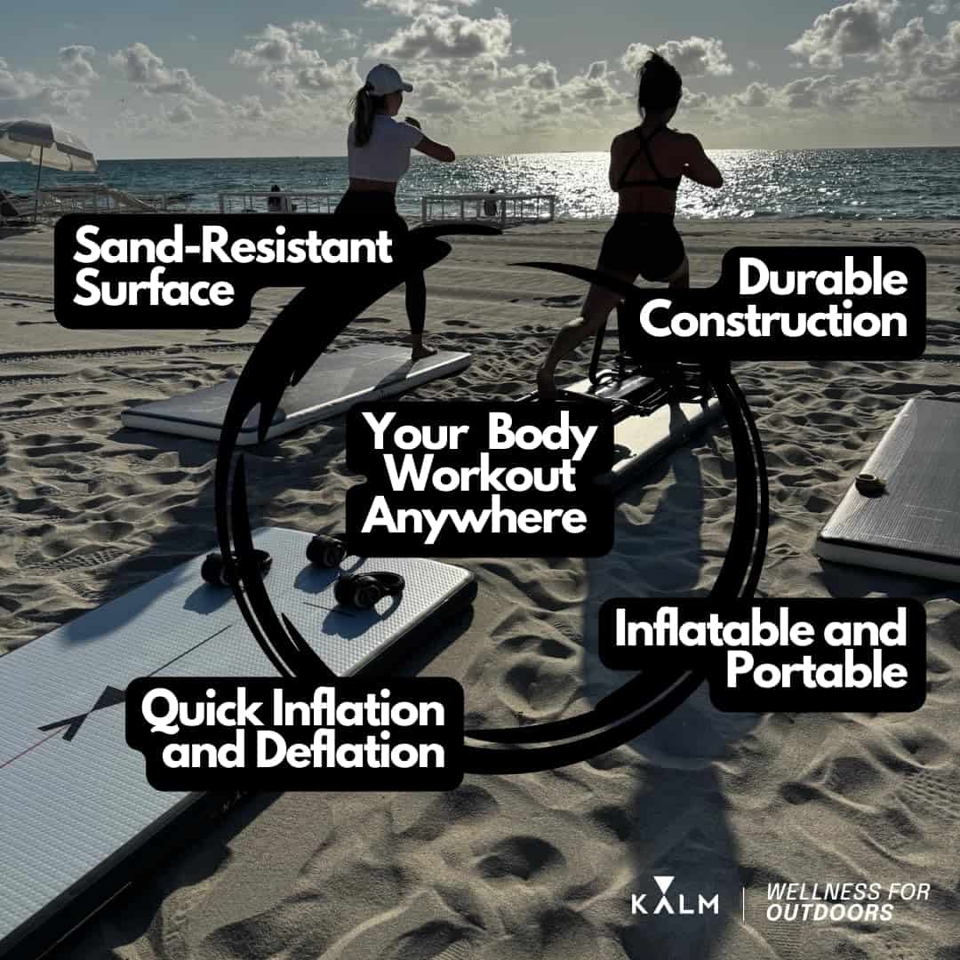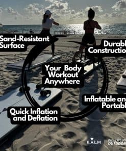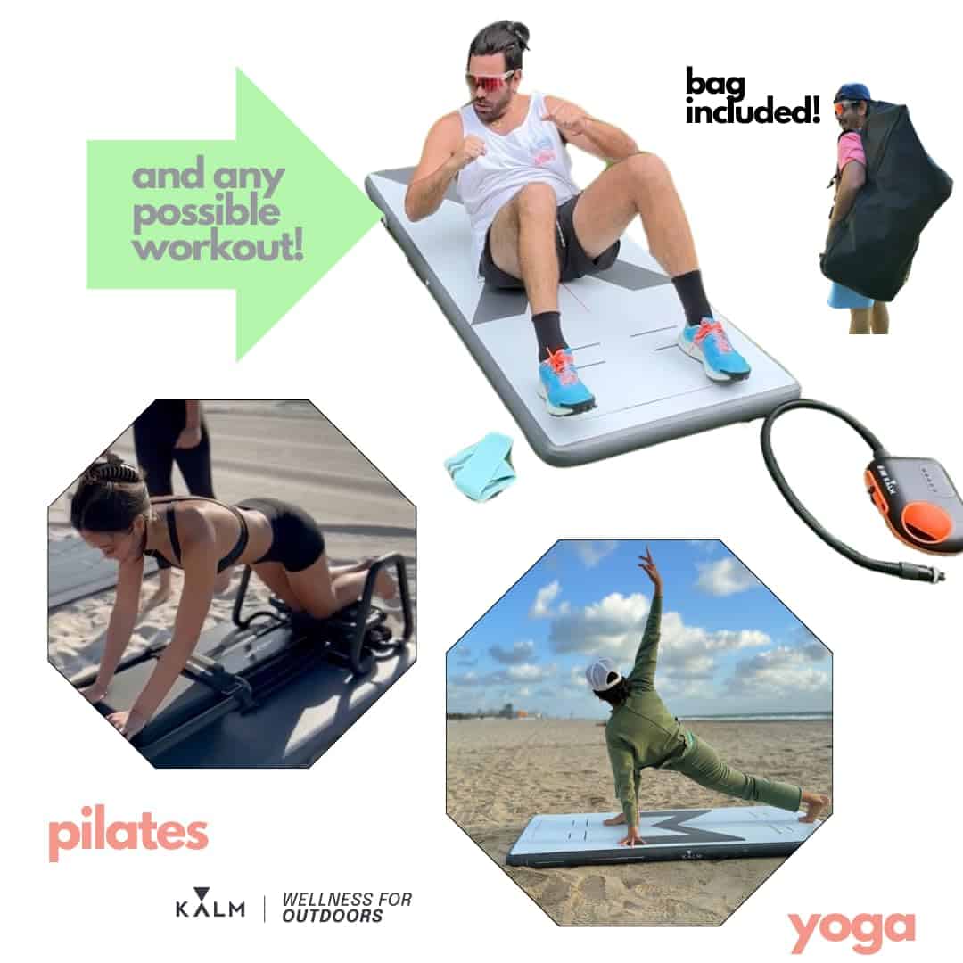 1. Yoga libre de arena: ¡Di adiós a la molesta arena pegada a tu tapete! La superficie suave e inflable de la tabla de yoga KORE Beach repelente a la arena te permite concentrarte en tu flujo y disfrutar de la calma brisa marina.