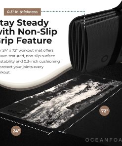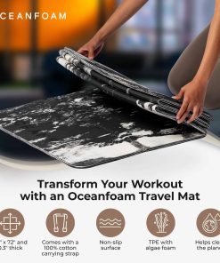 La superficie texturizada en ondas del Tapete Oceanfoam para Entrenamiento de Viaje proporciona un agarre firme, manteniéndote estable durante tus sesiones de yoga, pilates o fitness. Su diseño antideslizante ofrece una excelente tracción, lo que lo convierte en la elección ideal para cualquier tipo de rutina, ya sea en el gimnasio o en casa. Disfruta del equilibrio perfecto entre comodidad y portabilidad con este tapete de entrenamiento plegable de 24″ x 72″, con un grosor de 0.3″. Ofrece un soporte adicional para tus articulaciones y músculos, mientras se pliega fácilmente para que puedas llevarlo contigo a donde quieras. Fabricado con 15% de espuma de algas Bloom combinada con TPE no tóxico, este tapete de entrenamiento ecológico apoya tu salud al mismo tiempo que beneficia al planeta, limpiando 80.3 galones de agua y eliminando 230 gramos de CO2. Su conciencia ambiental se verá reflejada en cada pose que realices. El Tapete de Ejercicio para Viaje incluye una correa de transporte de 100% algodón para que puedas llevarlo fácilmente al gimnasio, parque o estudio. Simplemente dóblalo y úsala para transportarlo sin esfuerzo, asegurando que puedas mantener tu rutina de ejercicio donde quiera que vayas. A diferencia de otros tapetes de yoga, el Tapete Oceanfoam para Entrenamiento de Viaje cuenta con una construcción de espuma resistente que proporciona una excelente flexibilidad y se recupera a su forma original después de cada uso. Además, es fácil de limpiar, lo que lo convierte en la opción perfecta para tus entrenamientos diarios. ¡Prepárate para llevar tus sesiones de yoga, pilates y fitness al siguiente nivel con este tapete de entrenamiento de alta calidad y sostenible!