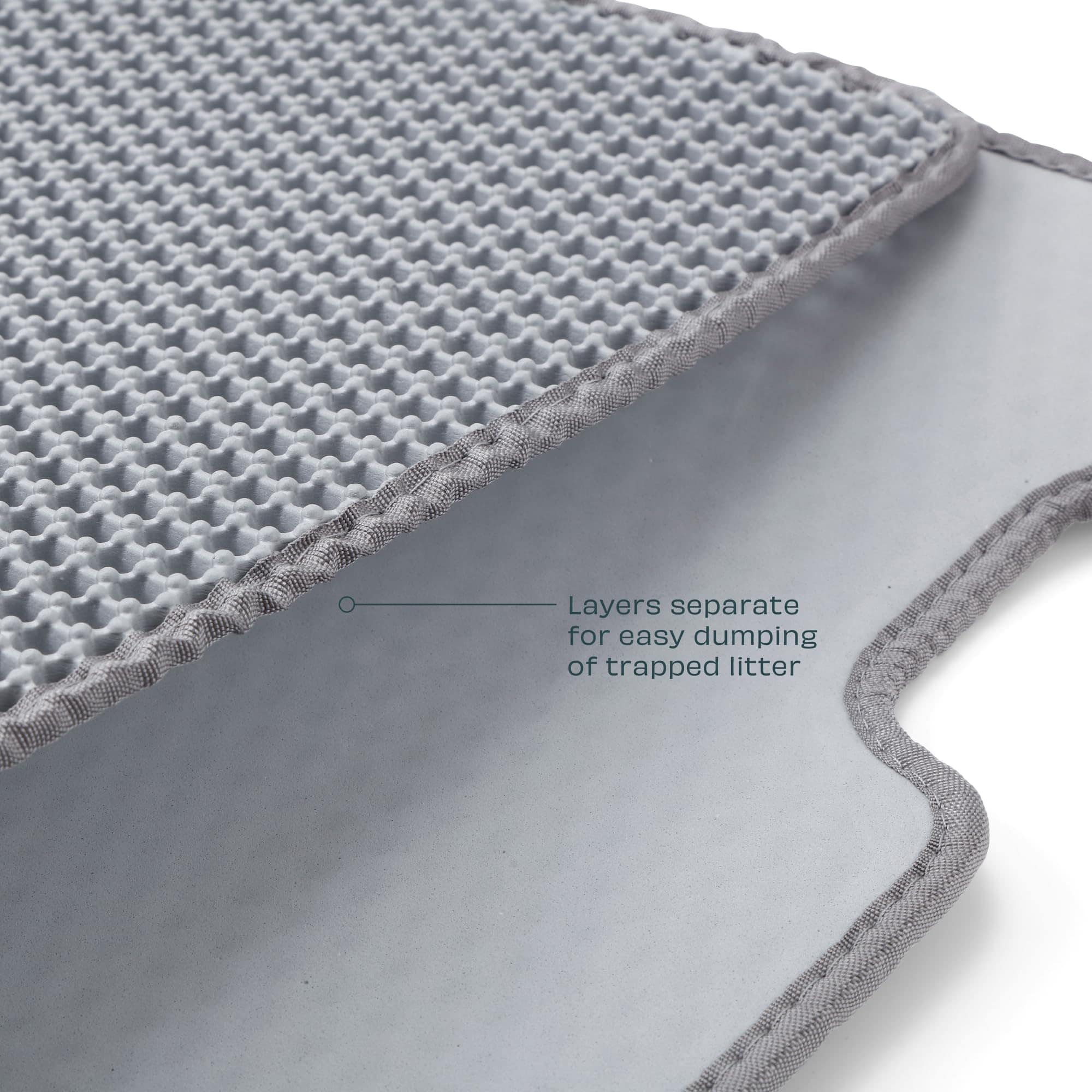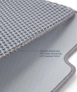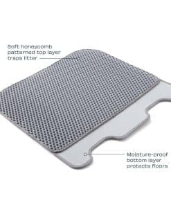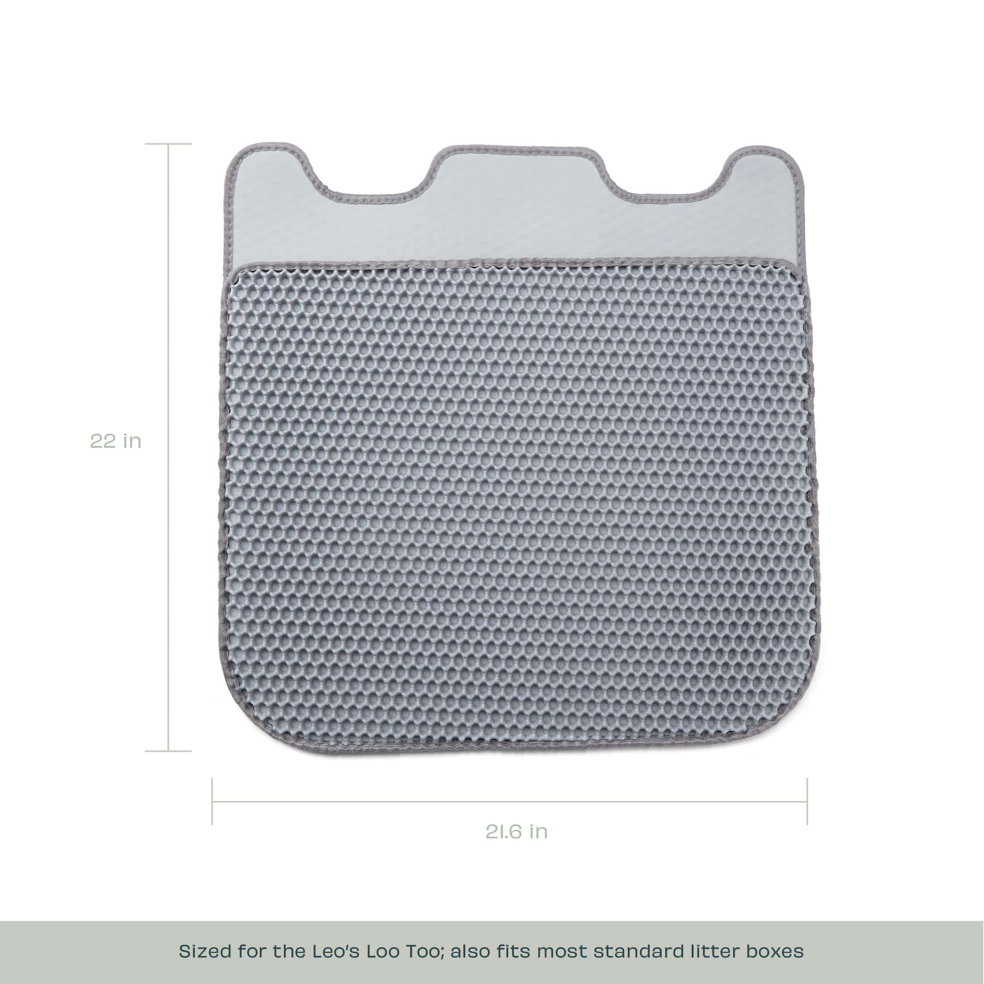 El Tapete para Arenero Casa Leo color Gris captura la arena de las patas del gato antes de que pueda ser rastreada en el piso y por toda tu casa. El tapete está hecho de materiales de alta calidad, en color coincidente con el Leo’s Loo Too, y cuenta con dos capas con una construcción única. Para una limpieza fácil simplemente separa las capas y vacía. El tapete está diseñado a medida para deslizarse debajo de la Bandeja de Arena Automática de Leo’s Loo Too. Se ajusta fácilmente entre los pies sensores en la parte inferior del Loo, lo que garantiza que el sistema de detección de peso y de gatos siga funcionando correctamente. Es lavable con agua, está hecho de material biodegradable y no contiene metales pesados. Mejor para tu gato y tu hogar.