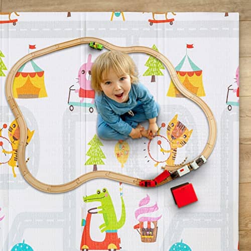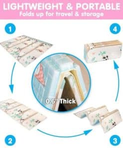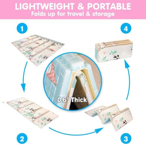 4. LIGERO Y PORTÁTIL: ¡Este tapete de juegos de espuma para bebés es ligero y se dobla fácilmente y de forma compacta para almacenamiento o viaje! El tapete de juegos para bebés incluye una bolsa de viaje conveniente con correa de transporte.