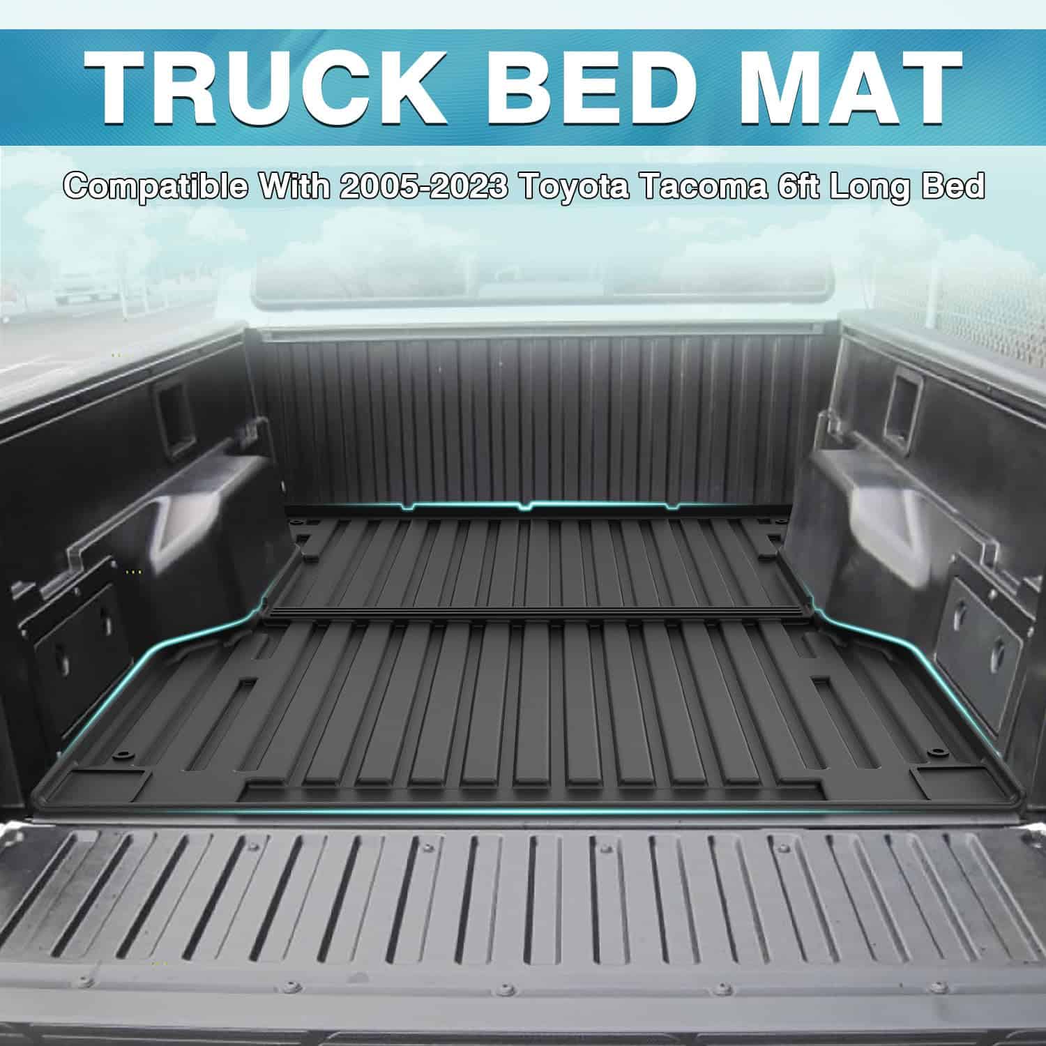 1. Ajuste personalizado para accesorios Tacoma: El tapete para cama de camión solo es compatible con Toyota Tacoma 6ft Long Bed 2016-2023. No es apto para el modelo de cama corta de 5 pies.