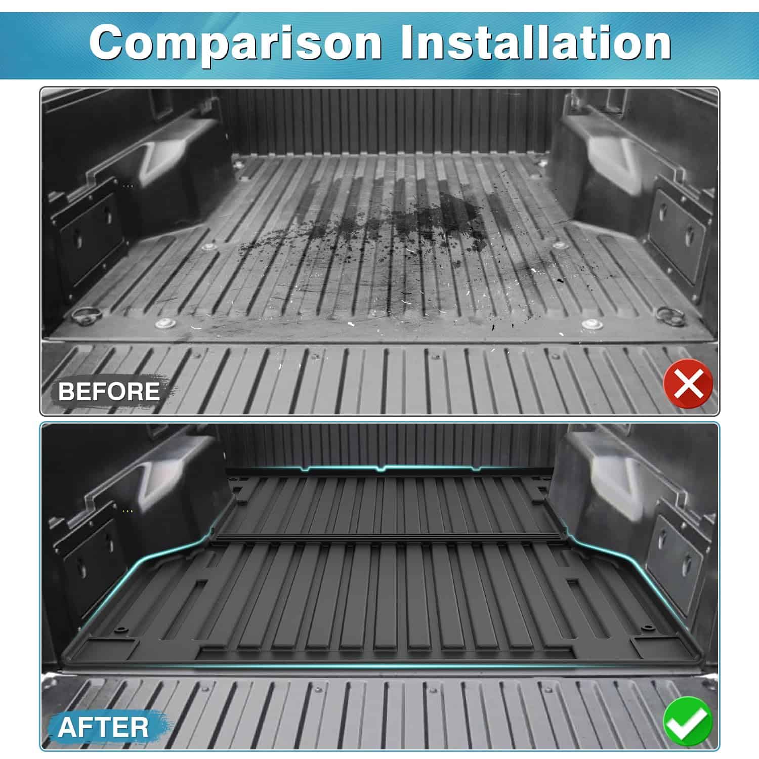 4. Antideslizante y atrapa escombros: El tapete para cama de camión texturizado, resistente a deslizamientos e impermeable tiene canales únicos que pueden atrapar eficazmente arena, agua, barro, suciedad, lluvia y fango. No tendrá que preocuparse por que el equipaje/comestibles rayen o manchen el piso original gracias al forro de cama.