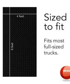 Tapete para cama de camión Resilia – Tamaño universal, protección resistente a la intemperie durante todo el año para tu camión, furgoneta de carga o SUV, accesorios para camionetas, ajuste a medida, negro, grueso 4 pies x 8 pies. Nuestro tapete protector premium se ajusta perfectamente en la mayoría de las camas de camiones, protegiendo de arañazos, abolladuras, golpes, derrames, rasguños, suciedad, daños y desgaste diario mientras evita que la carga se desplace, rebote y deslice. A diferencia de los revestimientos pintados que destruyen la pintura de fábrica existente en la cama de su camión, nuestro tapete de utilidad flexible es lo suficientemente resistente para los usos más duros sin comprometer su garantía o valor de reventa. Hecho con PVC 100% impermeable para una durabilidad duradera en interiores y exteriores, este material resistente es súper fácil de limpiar con una manguera, jabón y agua, o su limpiador favorito; Siempre agregue peso o asegure en una cama de camión abierta. Libre de cualquier contaminante regulado por Prop 65, nuestros productos utilizan la mayor cantidad de material reciclado posible para mantener la calidad mientras cuidan el medio ambiente, y se pueden recortar al tamaño para un ajuste personalizado y elegante. Nuestra empresa es de propiedad y operación familiar; Todos nuestros productos son orgullosamente hechos aquí en los EE. UU. en nuestra fábrica de última generación utilizando mano de obra estadounidense experta