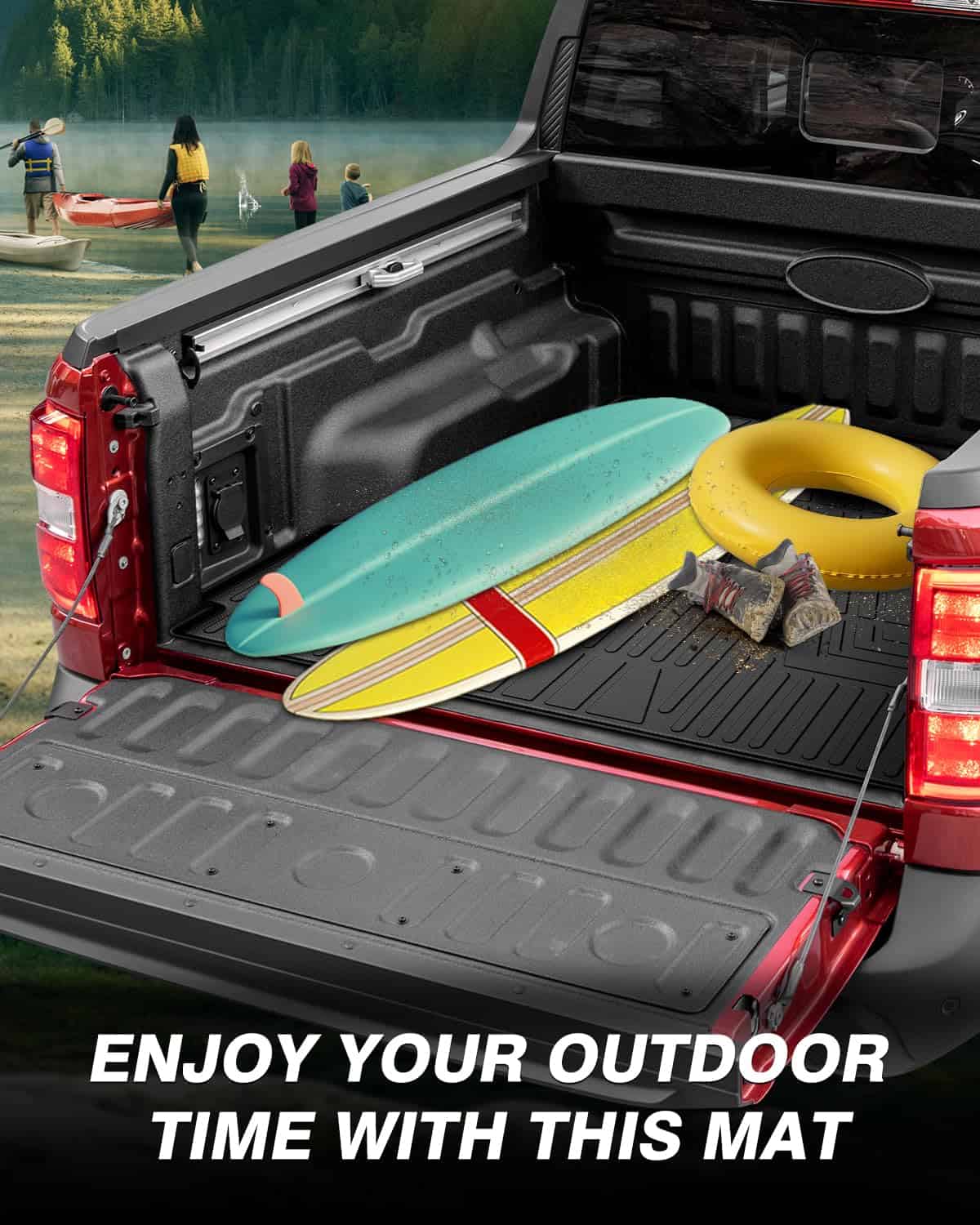 Tapete para cama de camioneta compatible con Ford Maverick 2022 2023 2024 Accesorios Todo Clima Alfombra para cama de camioneta TPE Negro. Este producto es un tapete para cama de camioneta especialmente diseñado para Ford Maverick 2022, 2023 y 2024. El protector para cama de camioneta está fabricado con material de alta calidad TPE, que es resistente al desgaste y a los arañazos. Protege las camas de las camionetas contra rayones, óxido y abolladuras. El tapete para cama de camioneta es flexible, impermeable y resistente a la suciedad. Sus bordes elevados proporcionan protección adicional y su superficie antideslizante evita derrames. Con un diseño fácil de limpiar y una instalación sencilla, este tapete para camioneta es la elección perfecta para mantener su Pickup en óptimas condiciones. ¡Proteja su carga con este tapete resistente y duradero para cama de camioneta Ford Maverick!