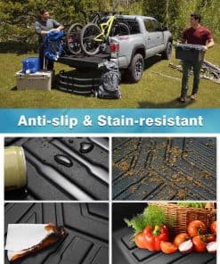 Tapete para cama de camioneta para Toyota Tundra 2022-2023 de 5.5 pies de largo, hecho de material TPE duradero y resistente a la intemperie. El forro para cama de camioneta ofrece un ajuste personalizado para Tundra, evitando que los objetos se deslicen durante el viaje debido a su textura antideslizante. Diseñado con canales únicos para atrapar arena, agua, lodo, suciedad y otros desechos. Los laterales elevados evitan que líquidos y escombros alcancen el piso original del vehículo. Fácil de limpiar, simplemente pase un paño húmedo o enjuague con agua. Mantén tu cama de camioneta limpia y protegida con este tapete duradero y de calidad.