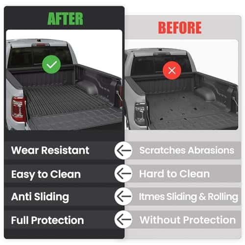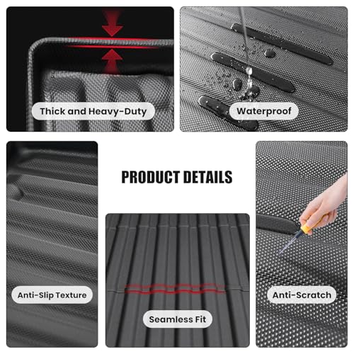 1. SE AJUSTA COMO UN GUANTE: El tapete para cama de camioneta Auxko para Toyota Tacoma 2024 de 5 pies está medido con láser de alta precisión, lo que significa que nuestro ajuste personalizado ofrecerá una cobertura óptima y parecerá que los tapetes vinieron con su Toyota Tacoma 2024 de 5 pies. 2. MATERIAL MÁS APROPIADO: Los tapetes de Tacoma 2024 de 5 pies de Auxko están construidos con TPE (elastómero termoplástico). Libre de látex y PVC, sin olor. El revestimiento de la camioneta de Toyota Tacoma 2024 de 5 pies es suave y duradero. Más importante aún, se mantendrán en condiciones climáticas extremas, por lo que no tiene que preocuparse por agrietarse, rizarse o que los tapetes se deterioren. 3. FÁCIL DE LIMPIAR: Una manguera de jardín puede limpiar fácilmente los tapetes para cama de Toyota Tacoma 2024 de 5 pies. También un paño húmedo y algo de agua corriente pueden hacerlo. El mantenimiento rutinario es realmente sencillo. 4. DISEÑO DE PARED ALTA: El borde biselado evita que las paredes se curven hacia adentro. El diseño de pared alta mantiene cualquier desorden dentro del revestimiento y fuera de su Toyota Tacoma 2024 de 5 pies. Las ranuras y crestas elevadas están diseñadas para canalizar el agua. 5. Instalación sencilla: simplemente colóquelo en posición. Fácil de instalar y quitar. Consejos cálidos: El revestimiento de la cama de la camioneta está plegado en el paquete. Por favor, coloque el tapete plano al sol durante un día (o dos días si no está expuesto a la luz solar directa), o enjuáguelo con agua caliente para eliminar arrugas y pliegues, y el tapete volverá a su forma original perfectamente.