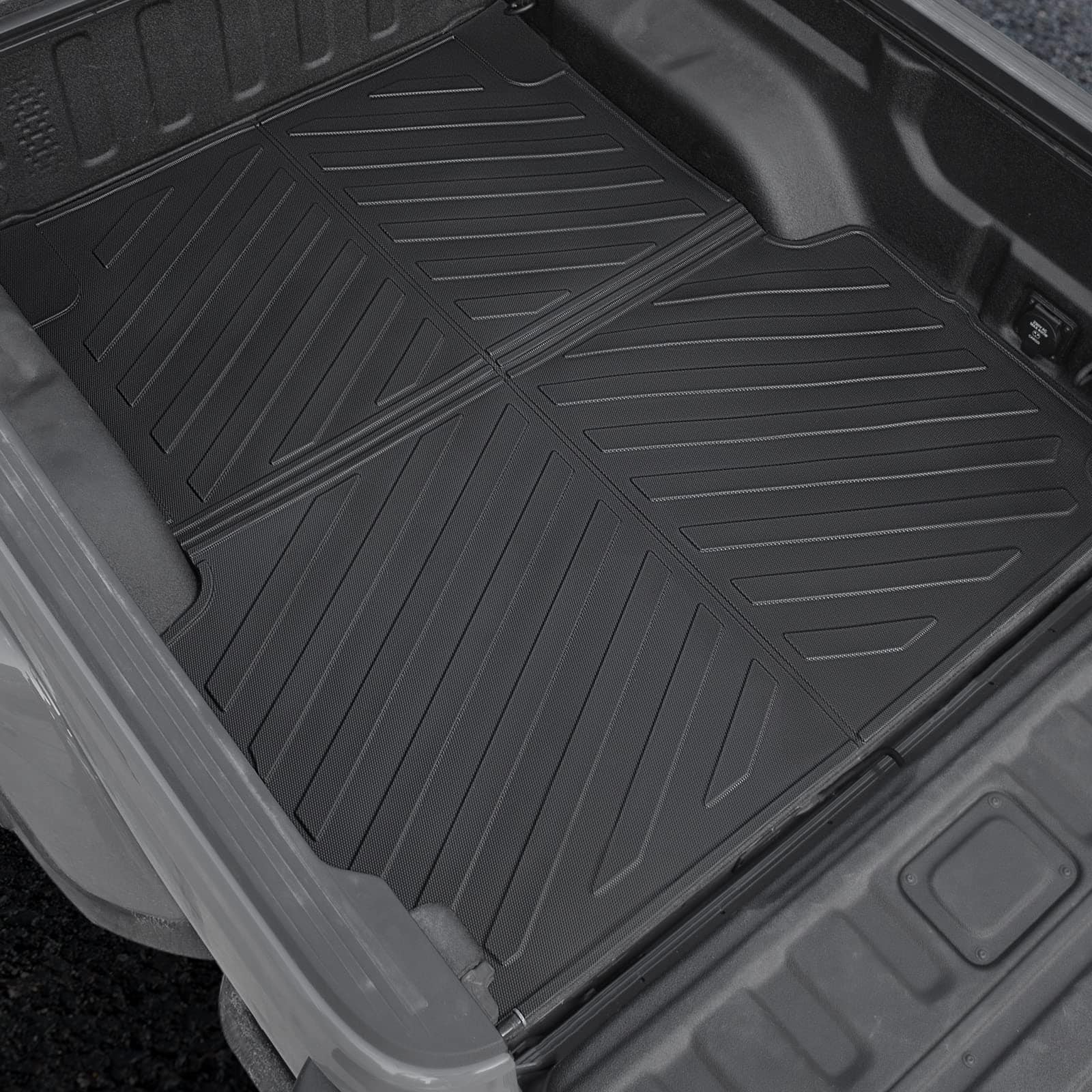 Material: Este tapete para cama de camioneta está hecho de elastómero termoplástico de alta calidad, con alta resistencia y elasticidad, no es fácil de deformar y rasgar, más ligero que los tapetes de goma tradicionales y sin olor.