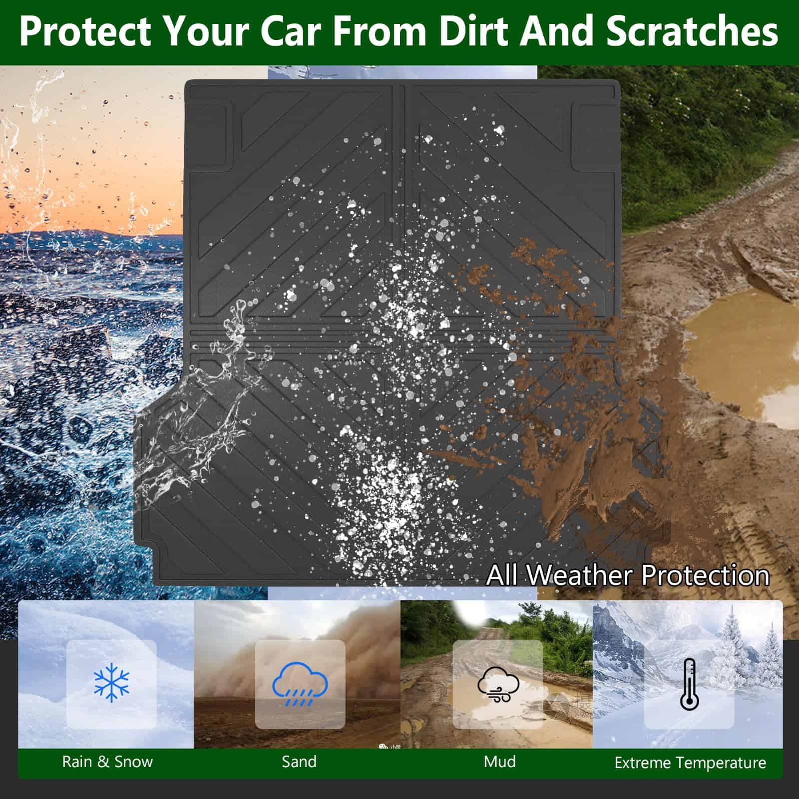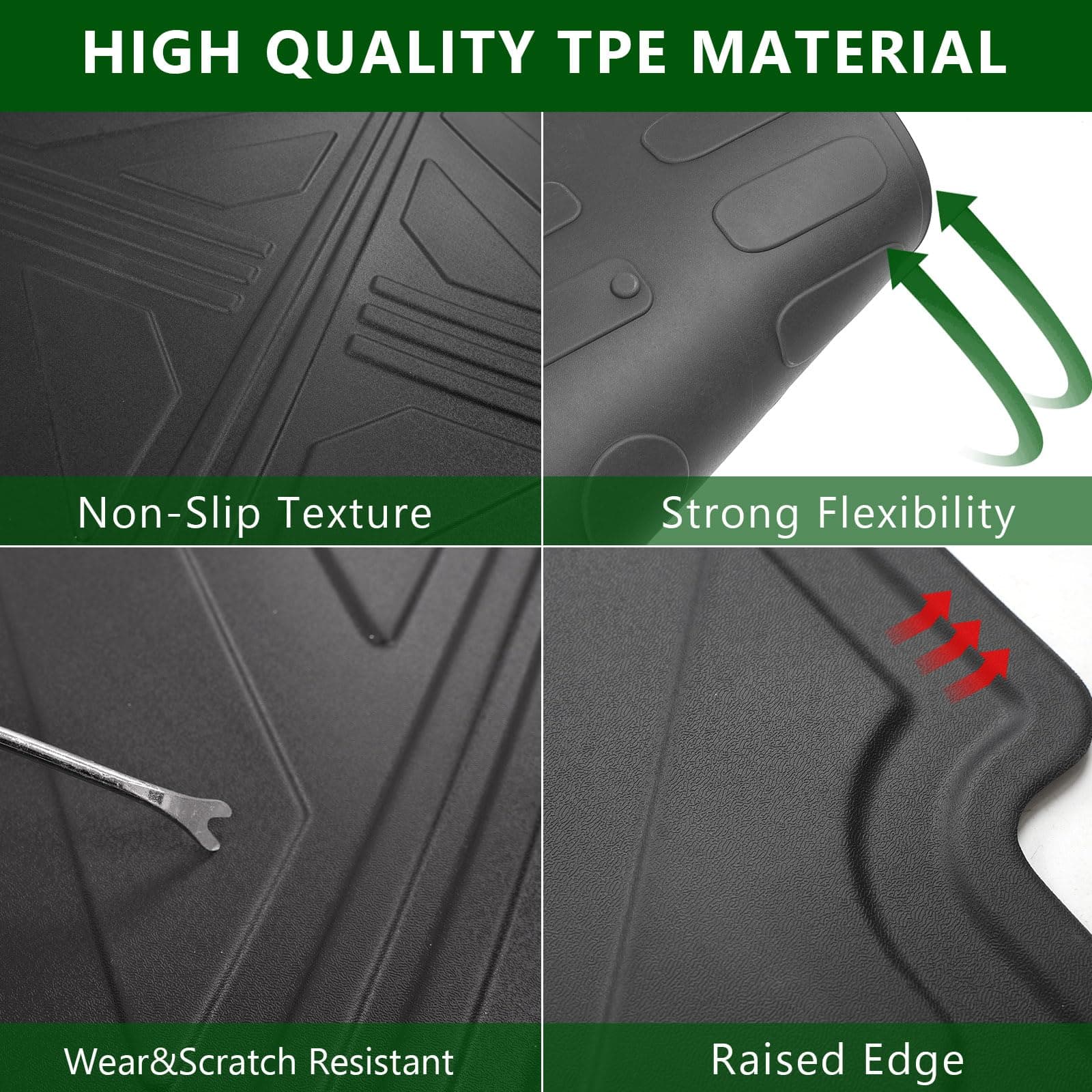 Material de Alta Calidad: El liner de cama de camioneta y protector de puerta trasera están hechos de material de TPE de alta calidad. Es resistente al desgaste y a los arañazos y puede ser utilizado por mucho tiempo. Incluso si los pliegas con fuerza, no se dañarán fácilmente. Puede usarlos con seguridad. Se pueden enjuagar con agua directamente o limpiar con un paño húmedo.