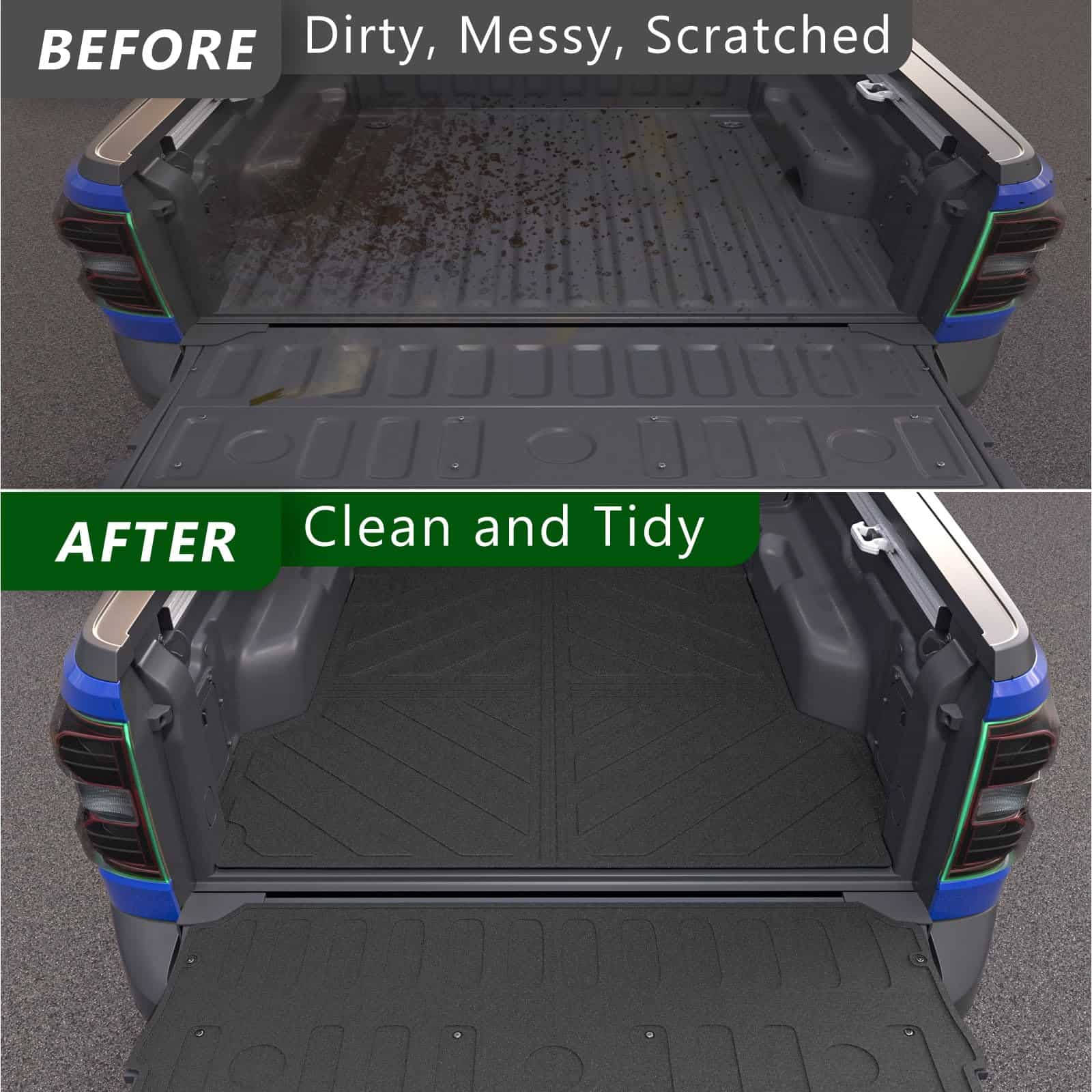 Función: Los tapetes de camioneta pueden reducir la colisión de objetos durante el transporte y evitar daños a los objetos y arañazos en el auto original. También puede hacer que la cama y la puerta trasera de la camioneta sucias luzcan nuevas y limpias.