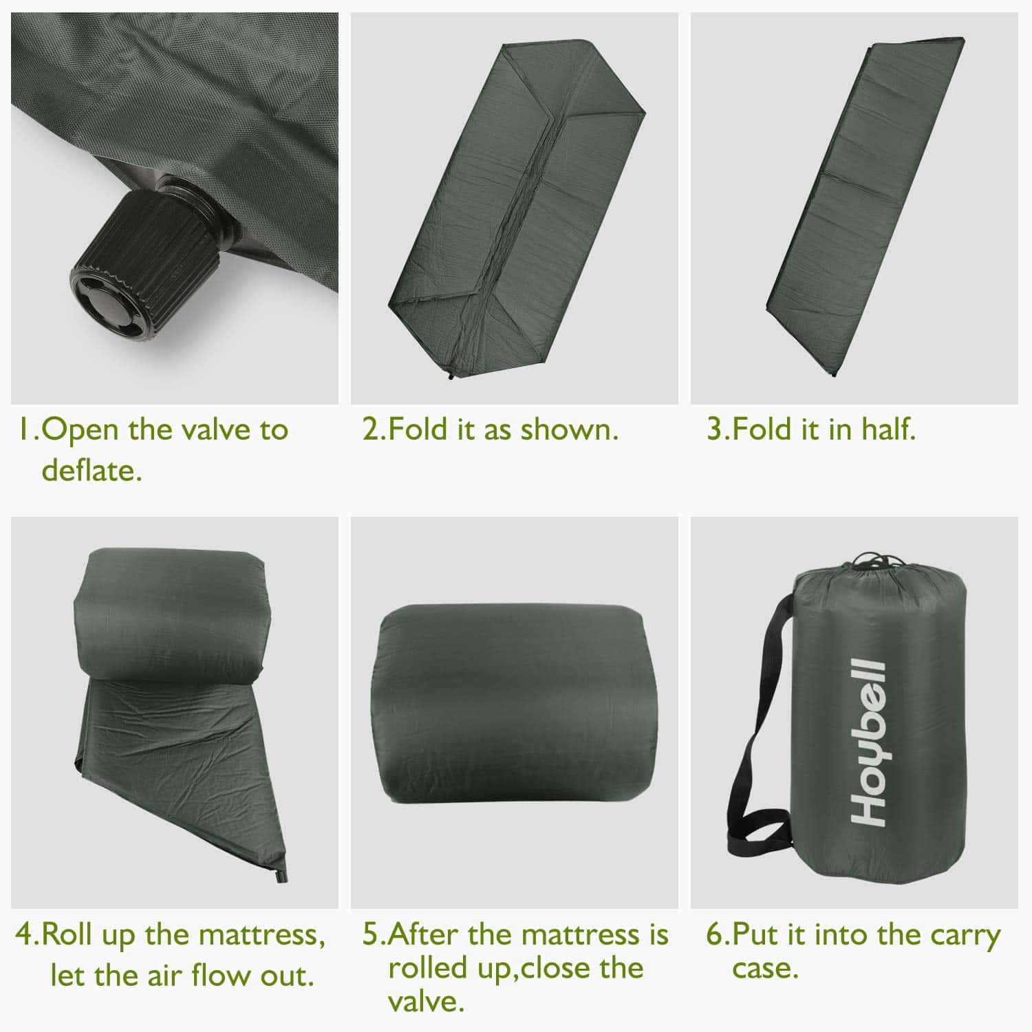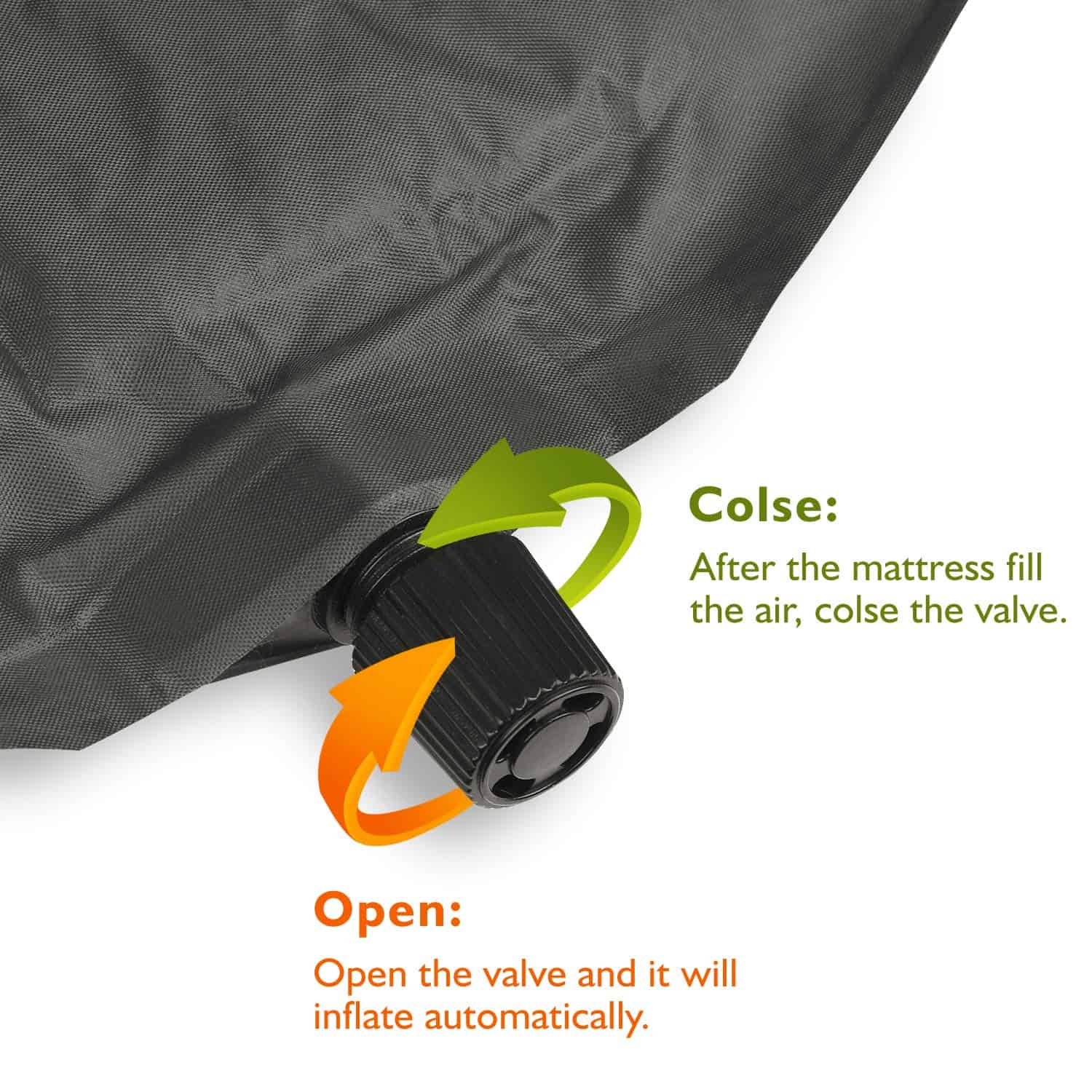 3. Diseño autoinflable: La válvula de flujo libre infla el tapete sin necesidad de bomba de aire.