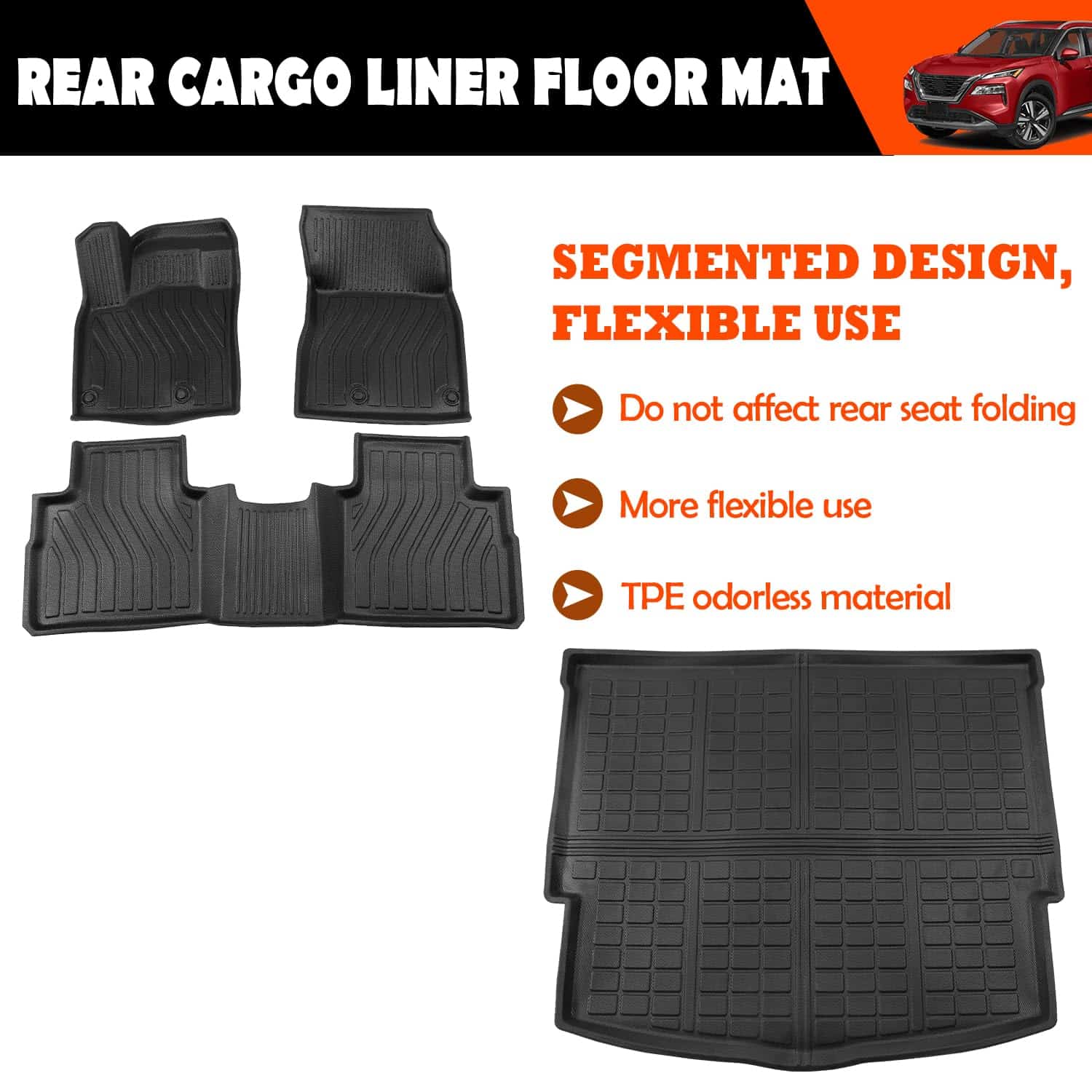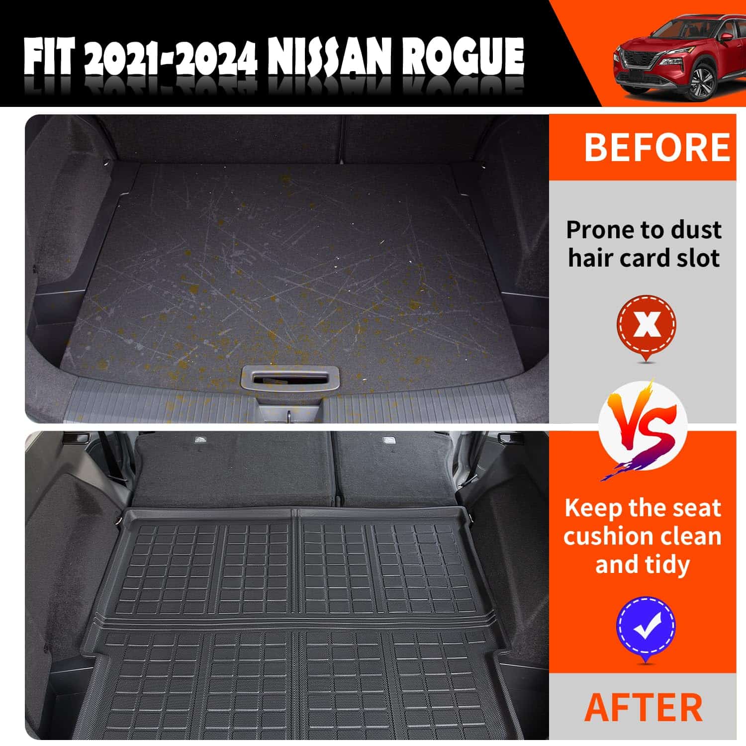 1. Ajuste perfecto: Nuestros tapetes para automóvil están diseñados según el maletero original del automóvil, compatible con Nissan Rogue 2021-2024 No Modelo Sport, no compatible con 2014-2020. Por favor, verifique el modelo de su vehículo antes de realizar el pedido.