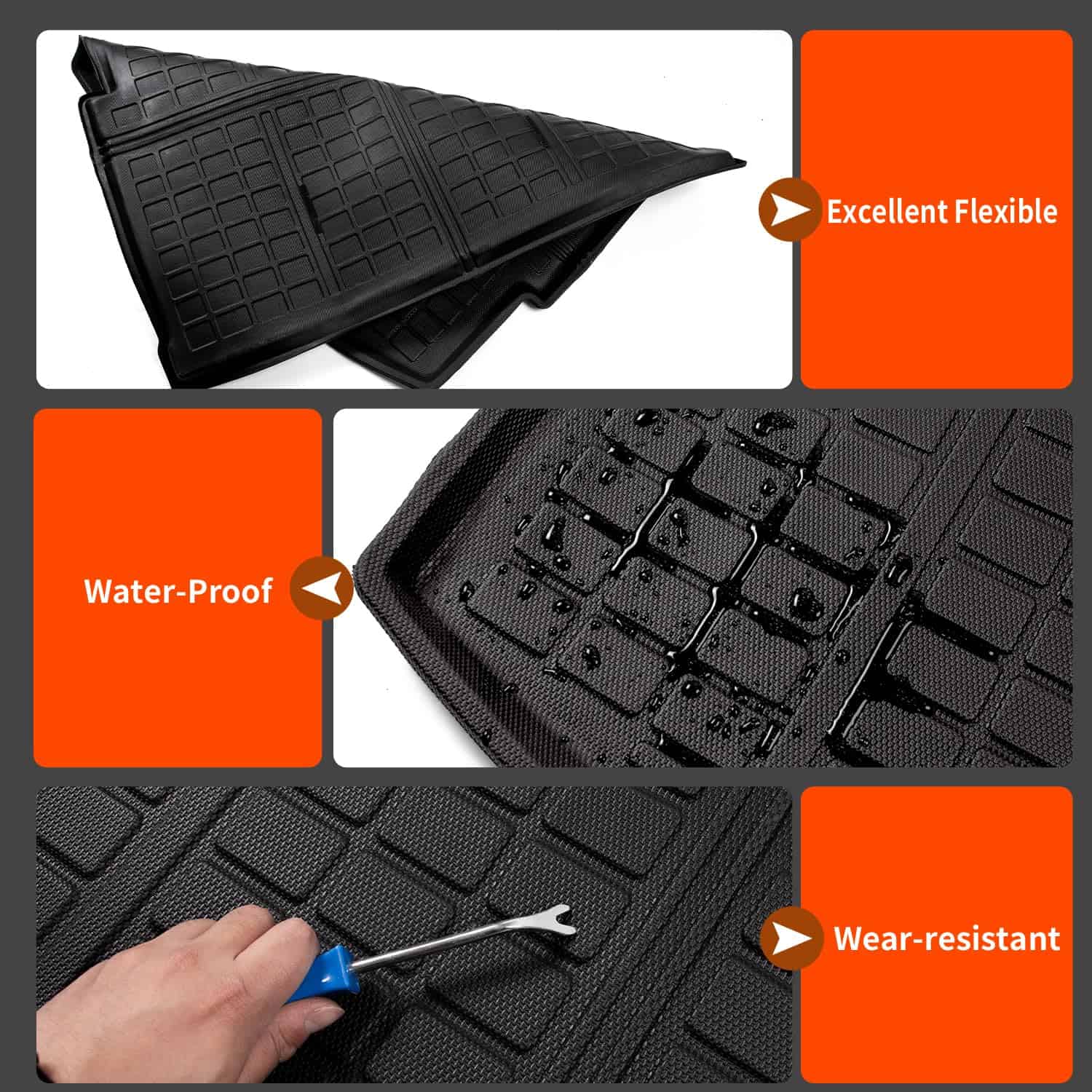 2. Materiales premium: El tapete del piso y el tapete de carga están hechos de material TPE de alta calidad, que es resistente a los arañazos, duradero y no tiene mal olor. Nuestros tapetes para automóvil TPE pueden soportar todo tipo de condiciones climáticas extremas, como días de lluvia intensa o tormentas de nieve, etc.