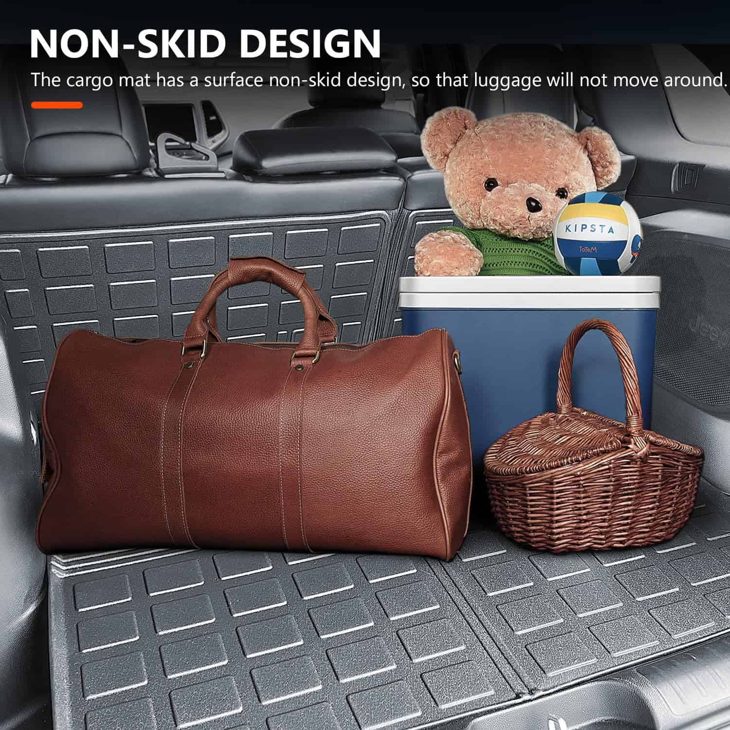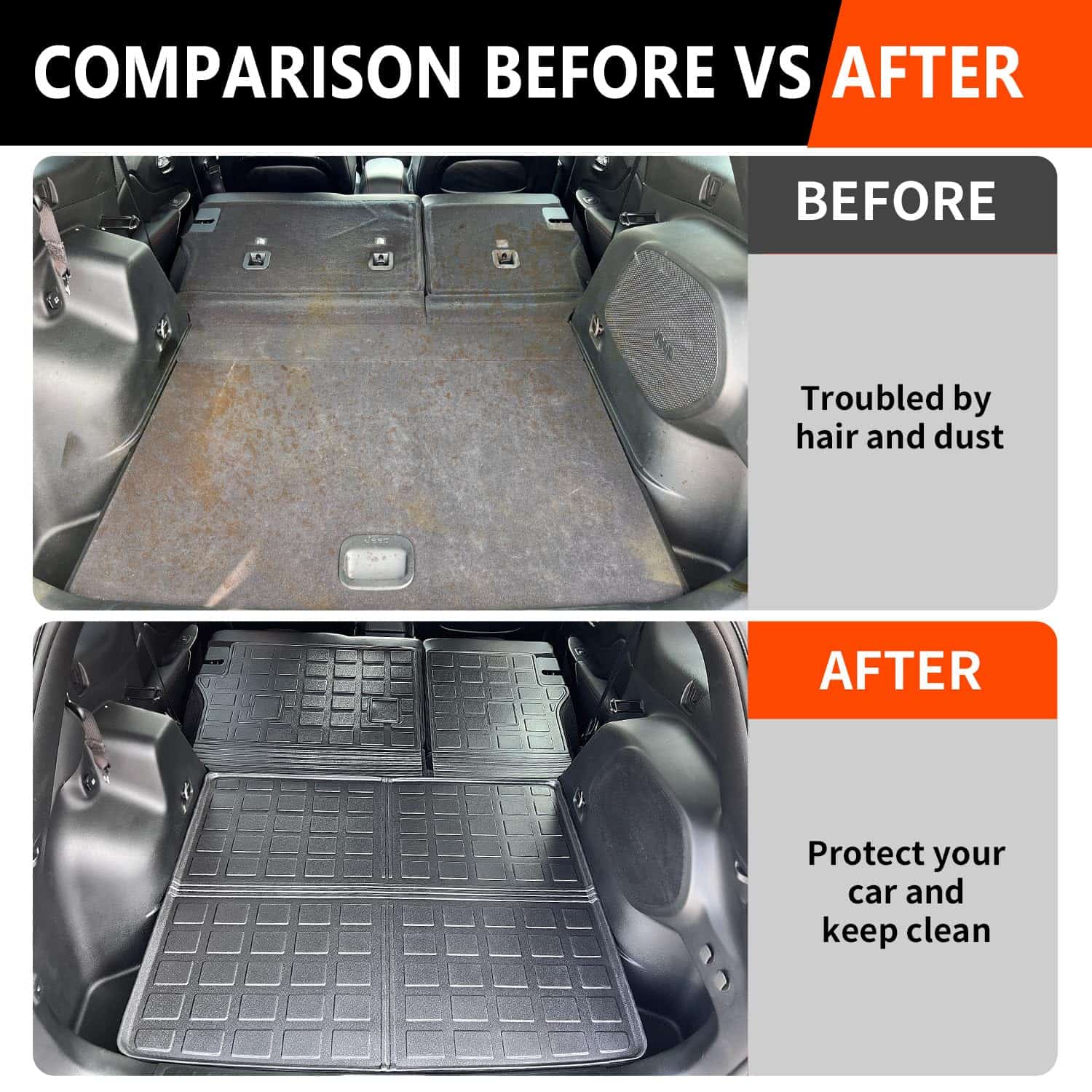 2. Material de alta calidad: Los tapetes para maletero de reemplazo para Jeep Cherokee están fabricados con material de alta calidad TPE. Nuestros tapetes son flexibles y no tienen olores desagradables.