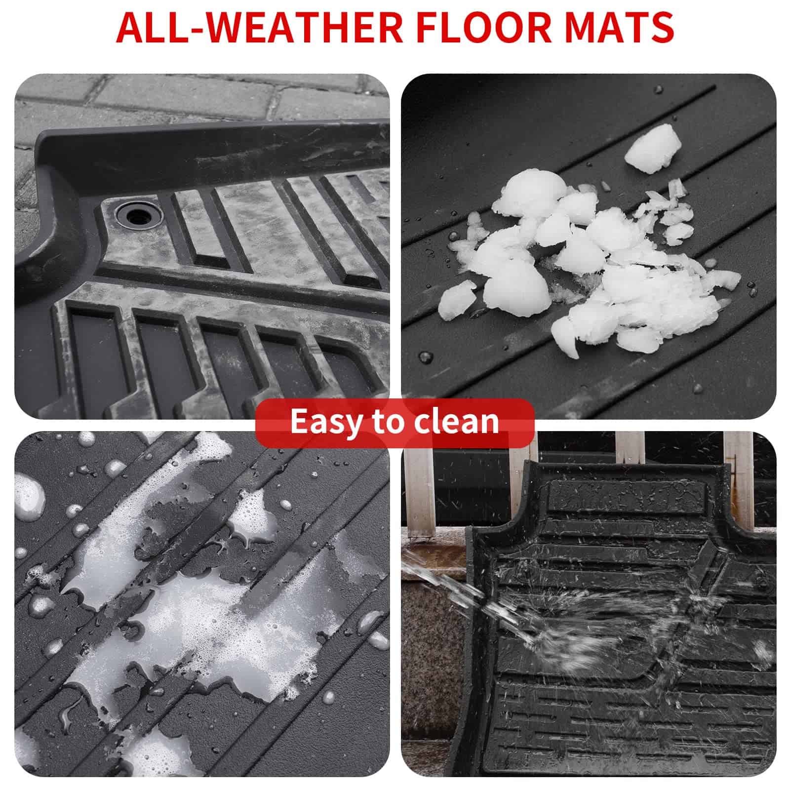 4. Instalación fácil: Los tapetes para automóvil son fáciles de instalar. Simplemente colócalos en tu coche. Fáciles de limpiar y de bajo mantenimiento. Superficie de alta capacidad que captura la humedad, derrames, desechos, etc.