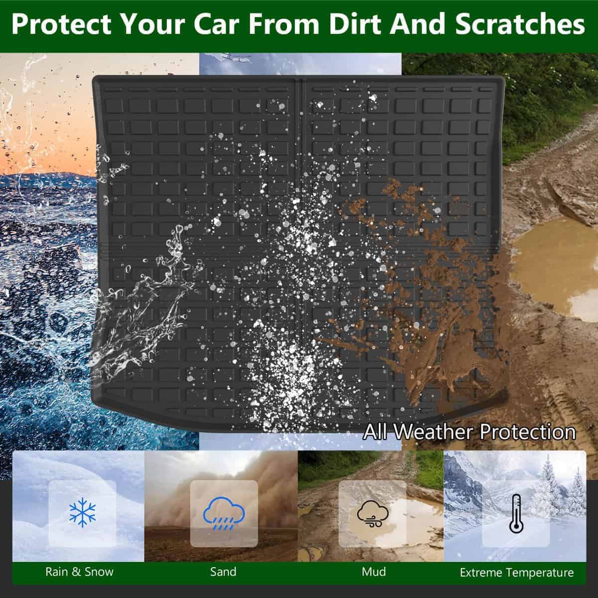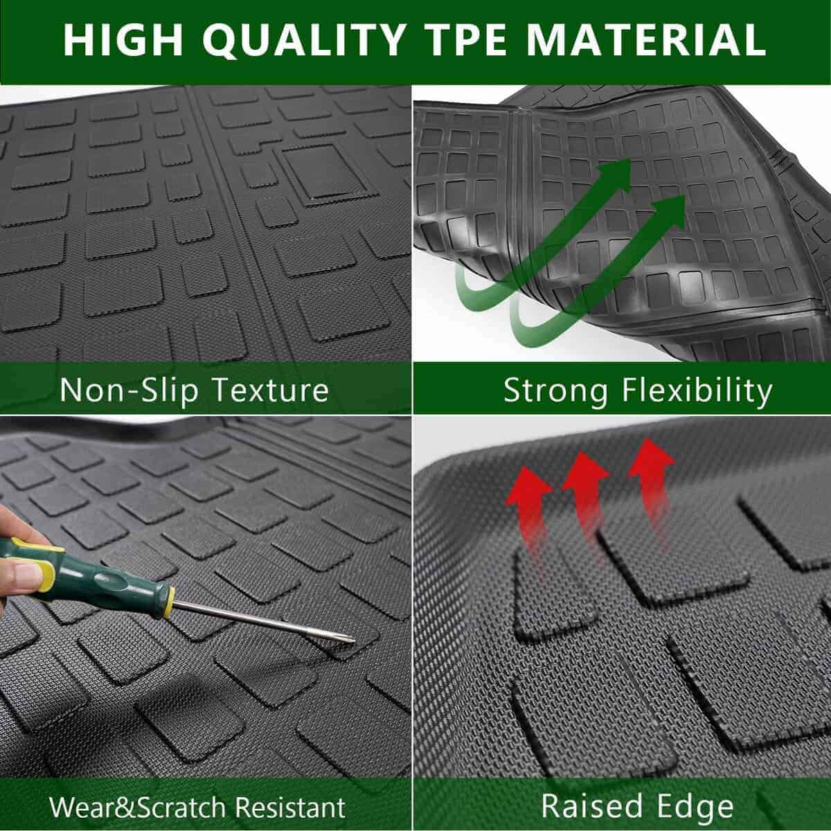 3. Función: La superficie antideslizante y la parte inferior de los revestimientos de carga evitan que el equipaje se mueva libremente, mantienen la nieve, el barro, la arena y la suciedad de manchar el automóvil y protegen tu maletero y asientos traseros de rayones.