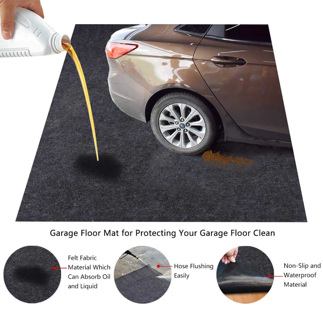El Tapete para Piso de Garaje está hecho de tela de fieltro que puede absorber agua, aceite u cualquier otro líquido.