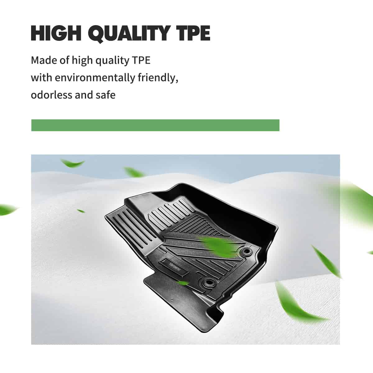 Los tapetes para piso Vanseno están fabricados con materiales de polietileno de baja densidad para que no dejen ningún piso de su vehículo desprotegido. Con la ayuda de su borde elevado y borde exterior moldeado, estos tapetes para piso retienen toda la suciedad y derrames de líquidos que puedas arrojarles. Específicamente, el borde elevado evita que cualquier cosa llegue a la alfombra de su vehículo, protegiéndola de accidentes desordenados. Esta forma diseñada está reforzada mientras mantiene el tapete para piso flexible. Estos tapetes para piso también vienen en una forma estándar multiusos, por lo que dan al interior de su automóvil el mejor aspecto posible. Vanseno busca proporcionar no solo una protección superior para su vehículo, sino también realzar la apariencia general del interior de su automóvil con sus superficies texturizadas y diseño moderno. Razones para elegir Tapetes para piso Vanseno USA: – Mucho más asequibles en comparación con otras marcas. – Protección contra todo tipo de clima contra nieve, barro, arena, agua salada y más. – Borde salvador de derrames (evita que los derrames lleguen a la alfombra). – Fácil de limpiar y mantener (se puede quitar del vehículo). Todos los productos de Vanseno USA están meticulosamente diseñados para adaptarse exactamente a cada automóvil.