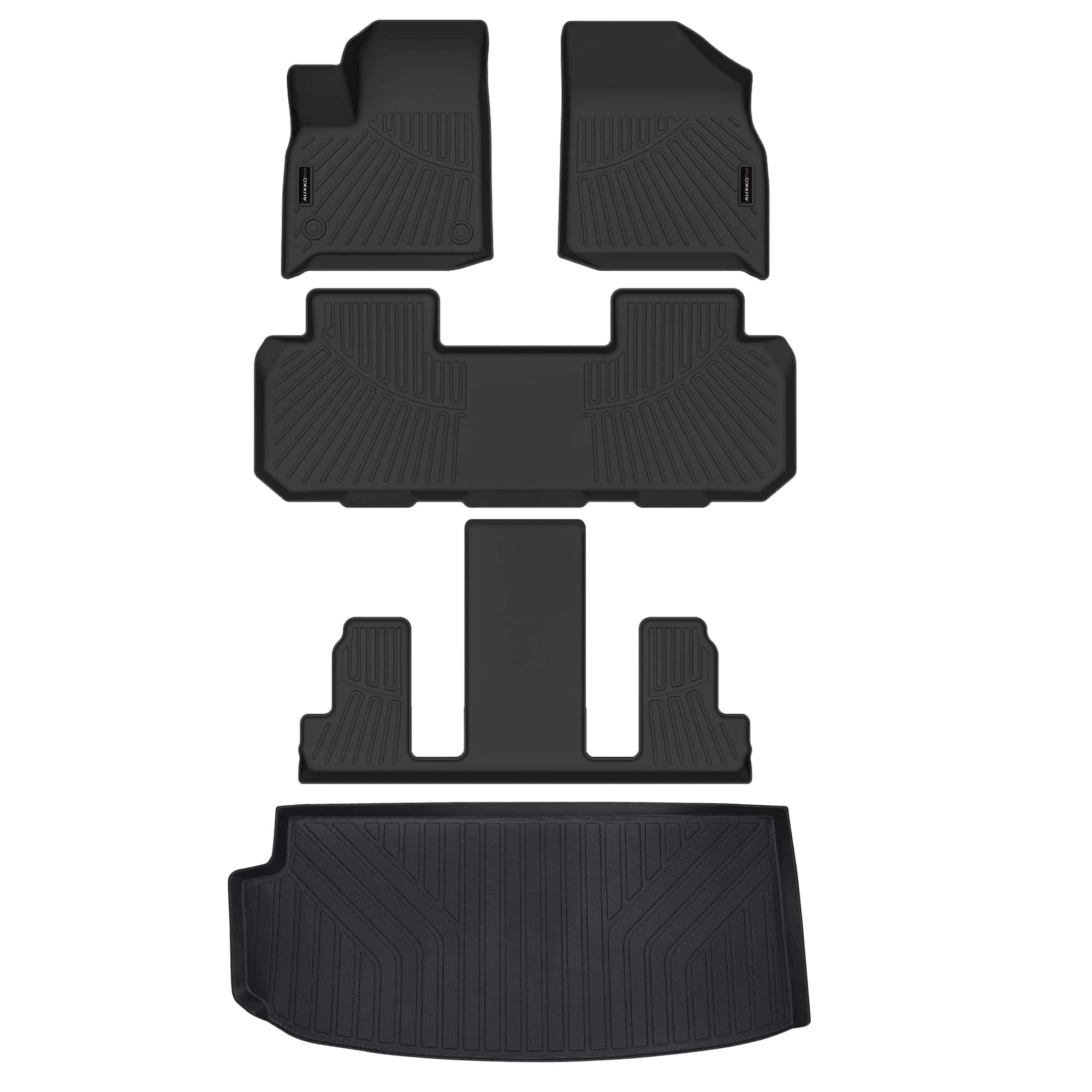 2. MATERIAL MÁS APROPIADO: Los tapetes de accesorios de Auxko para Chevrolet Traverse 7 Asientos 2018-2024 están hechos de TPE (elastómero termoplástico), Libre de látex y PVC, 100% reciclable, Sin olor. Los tapetes de Auxko para Chevy Traverse 7 Asientos 2018-2024 son suaves y duraderos. Más importante aún, resistirán en condiciones climáticas extremas, por lo que no tiene que preocuparse por grietas, rizos o que los tapetes se desgasten.