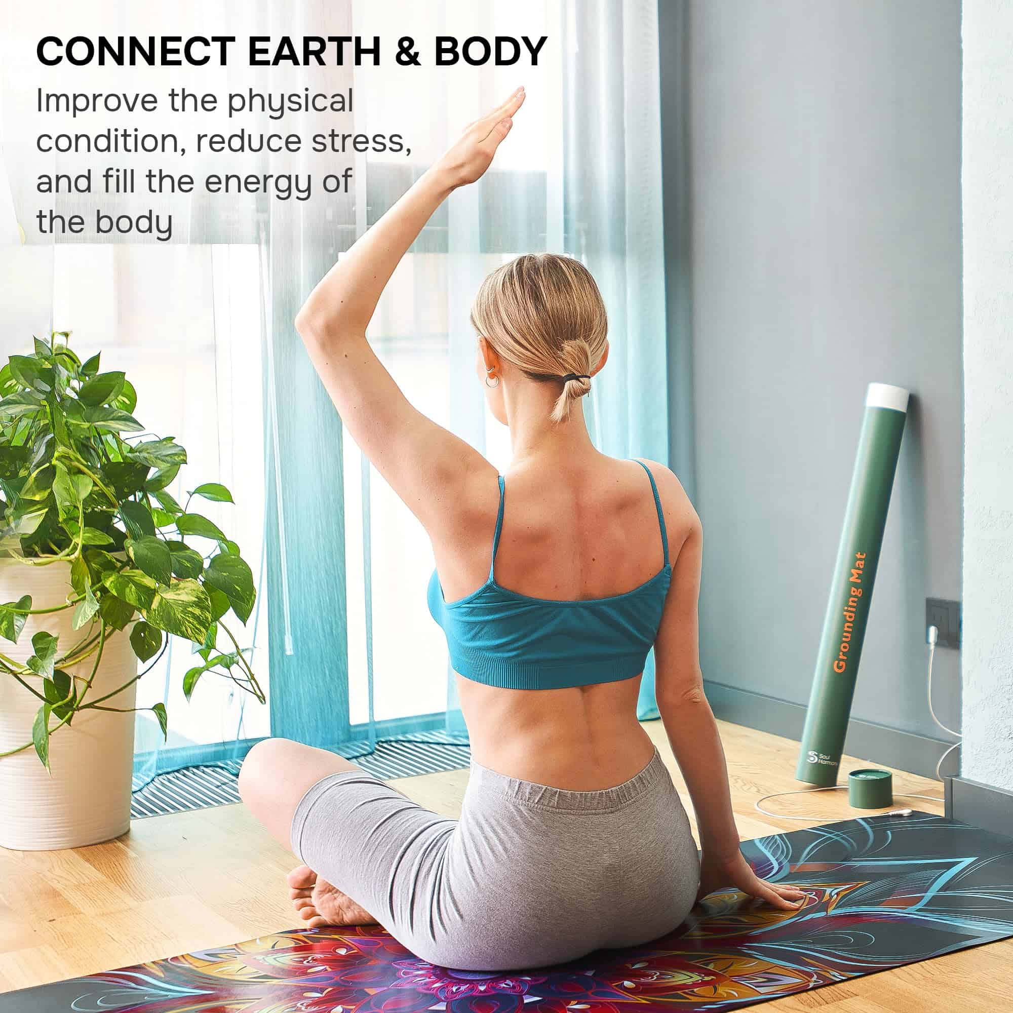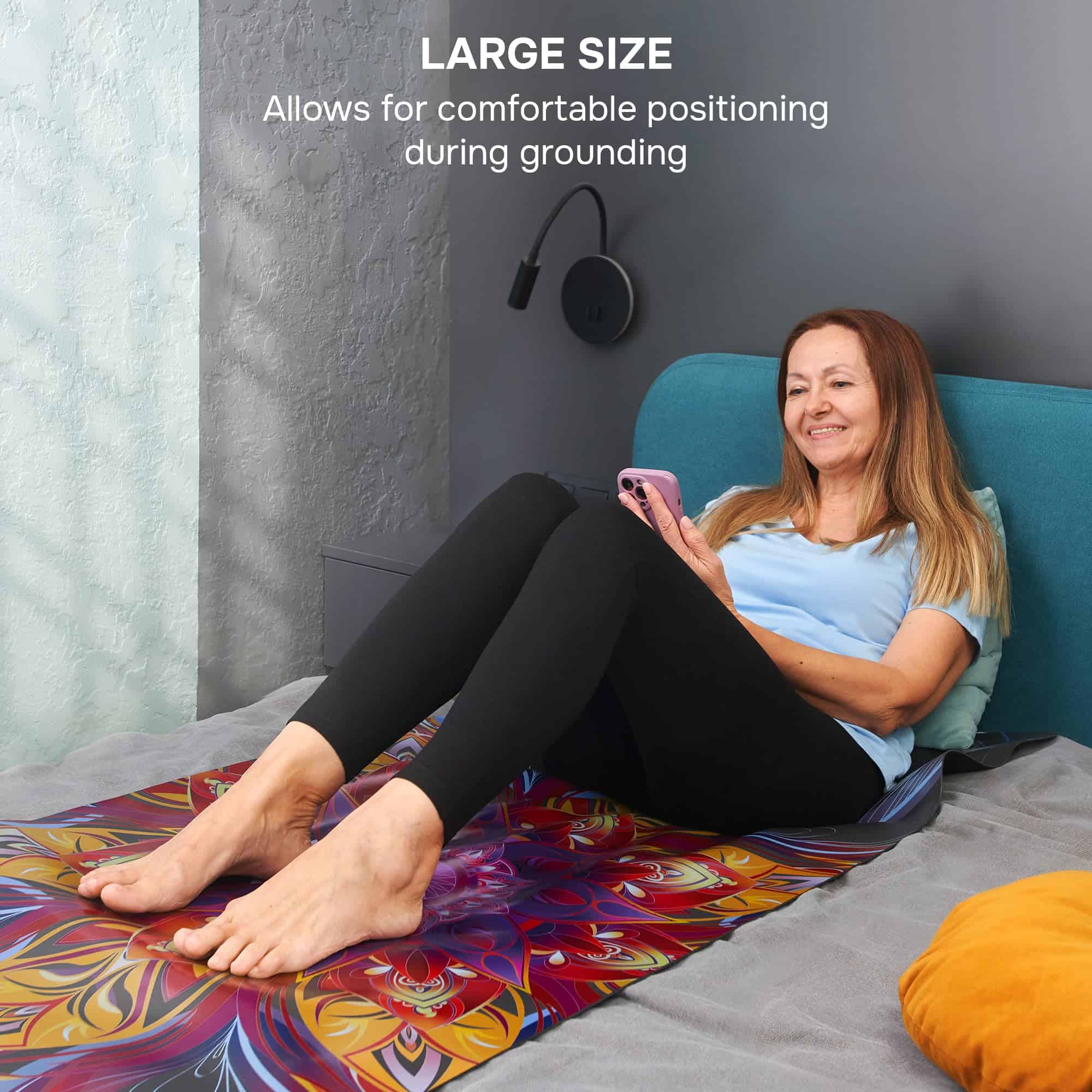 3. Versátil y multiusos: Ya sea que estés practicando yoga, relajándote en la cama, o simplemente buscando recargar energías, nuestro tapete de puesta a tierra es un compañero versátil. Úsalo durante la meditación, sesiones de yoga, o como parte de tu rutina antes de dormir para un sentido más profundo de bienestar.