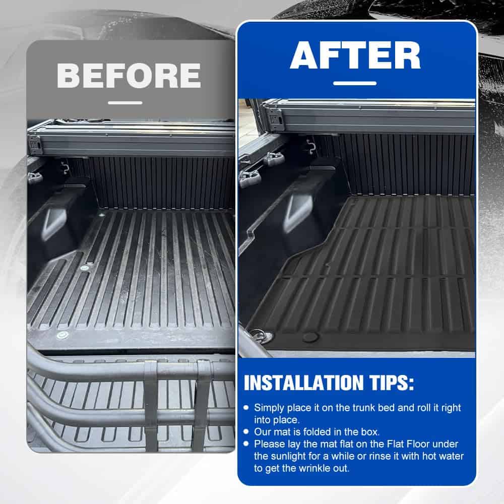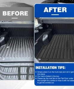1. Ajuste Personalizado: Nuestro tapete protector de cama de camioneta está diseñado para adaptarse a los contornos OEM para que encaje perfectamente con el tapete y permanezca en su lugar (Para Cabina Doble de 5 Pies (60″)).