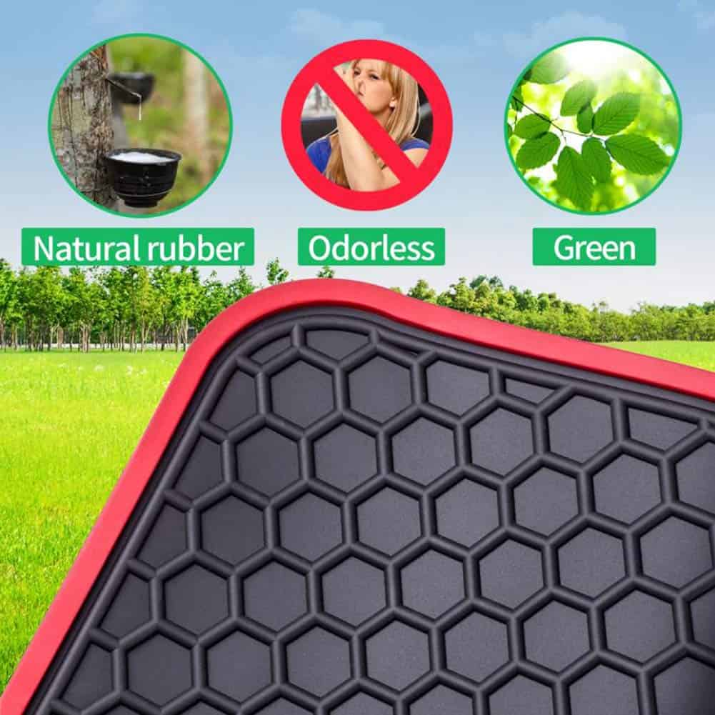 Tapete protector para piso de carrito de golf hecho de goma de alta calidad, garantiza 100% seguridad, sin olores, no tóxico y respetuoso con el medio ambiente en cualquier clima, ya sea verano o invierno extremadamente frío, manteniéndose suave y sin olores, asegurando que tu carro sea más resistente, duradero y elástico. El diseño profundo en forma de hexágono mantiene todos los artículos dentro del tapete, ayudando a que el piso de tu carrito de golf resista daños causados por arena, barro, agua, suciedad, aceite, gas, ácido de batería y todo lo demás, manteniendo el piso limpio y seco, fácil de limpiar, con un tapete antideslizante. Personalizado para ajustarse perfectamente a tu carrito de golf y fácil de instalar. La goma suave es fácil de quitar y limpiar, solo necesitas una manguera de agua para eliminar todas las manchas fácilmente. Ofrecemos garantía de un año. matsentico tiene como objetivo ofrecer los mejores productos y servicios a nuestros clientes y a sus carros, prueba nuestro tapete protector ecológico de alta calidad para carritos de golf y comparte tu experiencia con tus amigos. Ofrecemos devolución gratuita durante 30 días y garantía de un año.