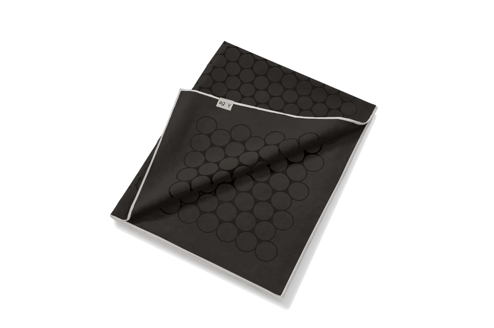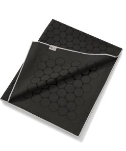 3. NIVELES DE AGARRE AJUSTABLES – Cada lado de la toalla presenta un patrón circular de diferente tamaño con niveles de silicona variables, lo que te permite personalizar tu práctica cambiando de lado y eligiendo el nivel de agarre que mejor se adapte a tus necesidades.