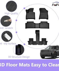 4. Protección para todo clima: Los tapetes para Hyundai Santa FE 2024 se pueden usar en todas las condiciones climáticas (lluvia, niebla, sal, nieve, etc.). El diseño a medida de los tapetes para todo clima y los bordes elevados reforzados evitan derrames de líquidos y escombros.