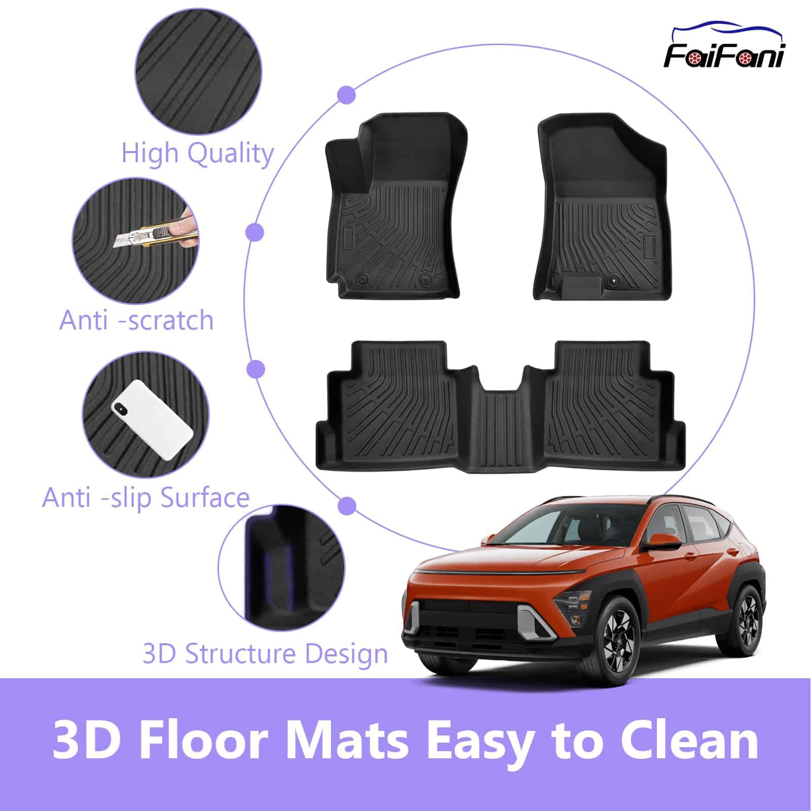 1. Tapetes de auto a medida para todo clima adaptados para Hyundai Kona 2024.
