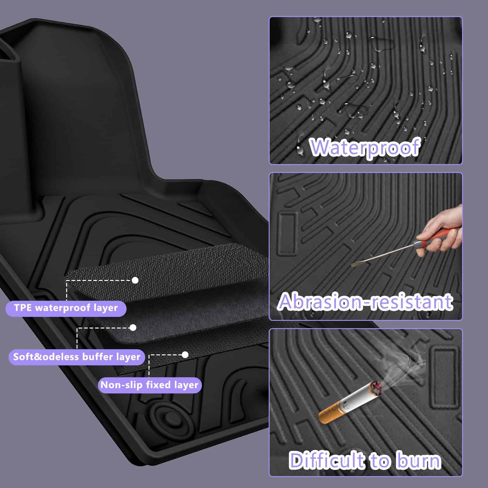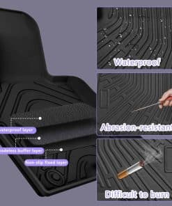 1. Tapetes de automóvil a medida para todo clima, compatibles con Hyundai Kona Electric 2024. 2. Instalación y limpieza fáciles: los tapetes son muy fáciles de instalar, no es necesario cortar ni construir el tapete para automóvil, no se requieren herramientas, ajuste preciso, simplemente alinear e instalar. La superficie de los tapetes es lisa, no se adhiere fácilmente a la suciedad, y tiene un diseño único de canal alto y bajo de agua que es impermeable y no permeable, lo que hace que la limpieza sea muy conveniente. 3. Duradero, antideslizante y seguro. Los tapetes tienen una buena resistencia al desgaste y una vida útil relativamente larga. La superficie de los tapetes generalmente está diseñada con texturas antideslizantes, que pueden evitar eficazmente que los pies del conductor se resbalen y mejorar la seguridad al conducir. 4. Protección todo clima. Los tapetes para Hyundai Kona Electric 2024 se pueden utilizar en todas las condiciones climáticas (lluvia, niebla, sal, nieve, etc.). El diseño a medida de los tapetes todo clima y los bordes elevados reforzados evitan derrames de líquidos y escombros. 5. Soporte al cliente: Nos comprometemos a brindar un excelente servicio al cliente. Si tiene alguna pregunta o inquietud acerca de su compra, nuestro amable equipo de atención al cliente está aquí para ayudarle.