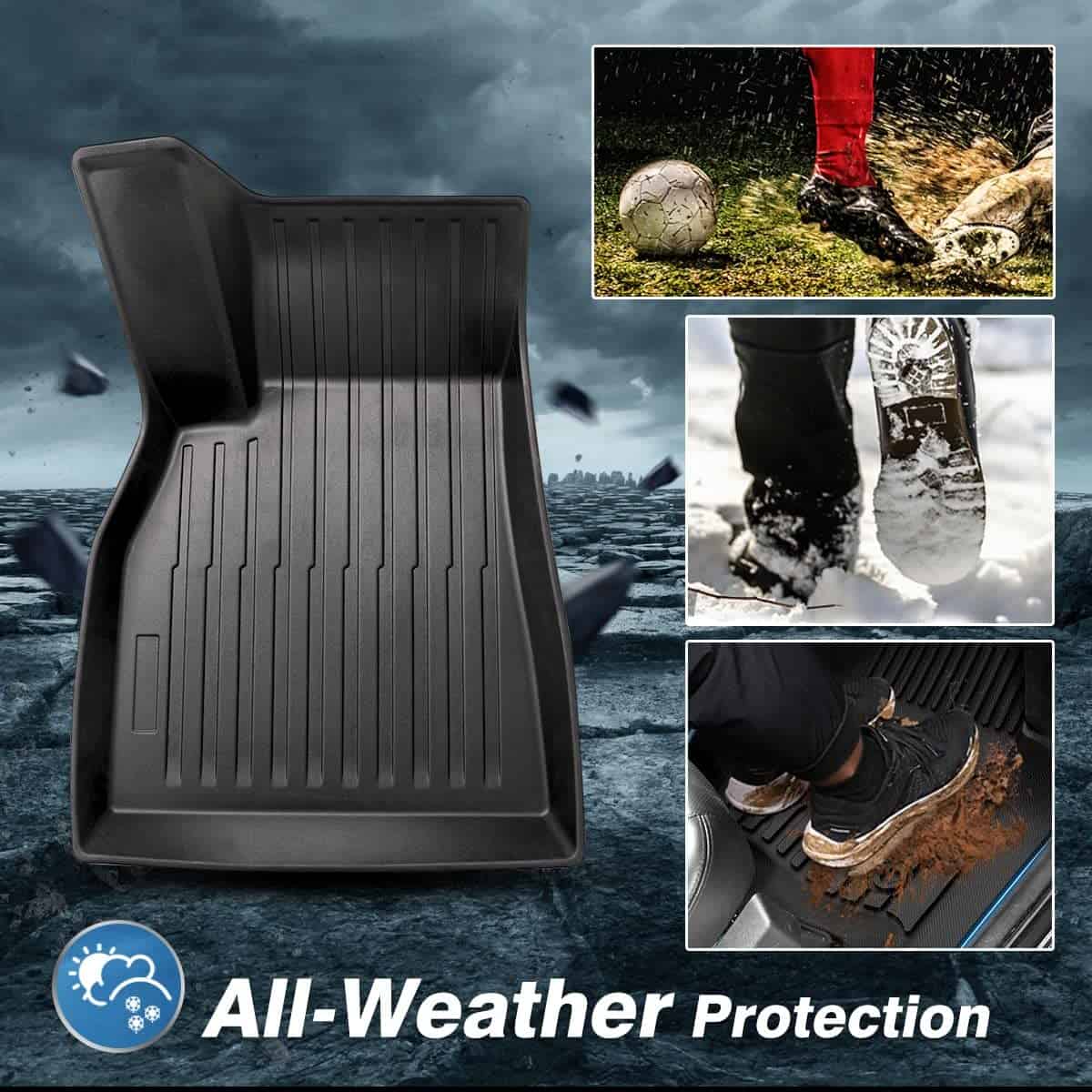 4. Protección en todas las estaciones: Nuestros tapetes para piso tienen resistencia a temperaturas de -40 F a 122 F. El diseño de mayor cobertura puede atrapar arena, agua, barro, suciedad, lluvia, mugre. Proteja el piso de su vehículo de cualquier otro accidente desordenado.