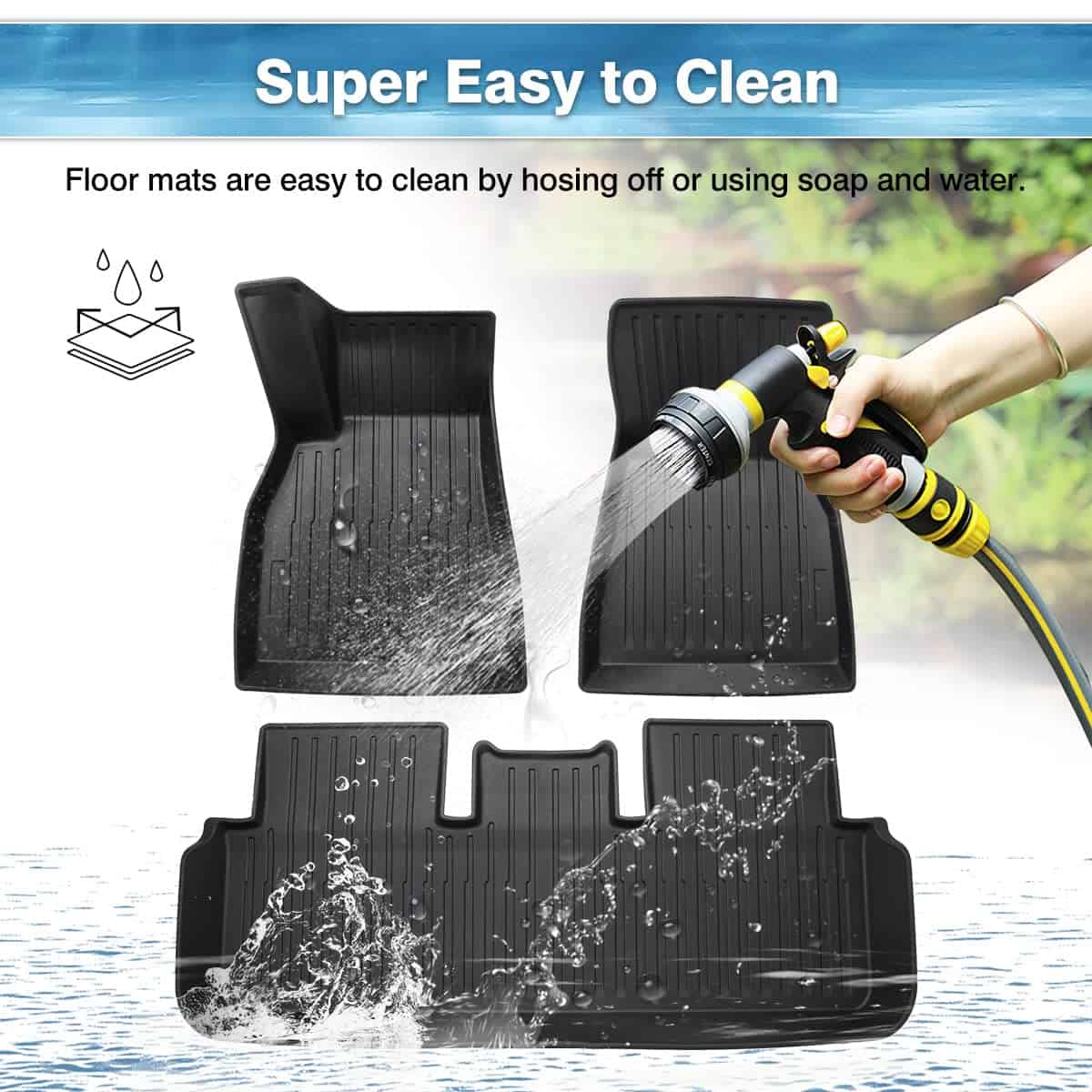 5. Súper fácil de limpiar: La superficie impermeable se puede limpiar simplemente pasando un paño, enjuagando o usando jabón y agua. Rápido y fácil para hacer que el piso de su automóvil luzca bonito y nuevo nuevamente.