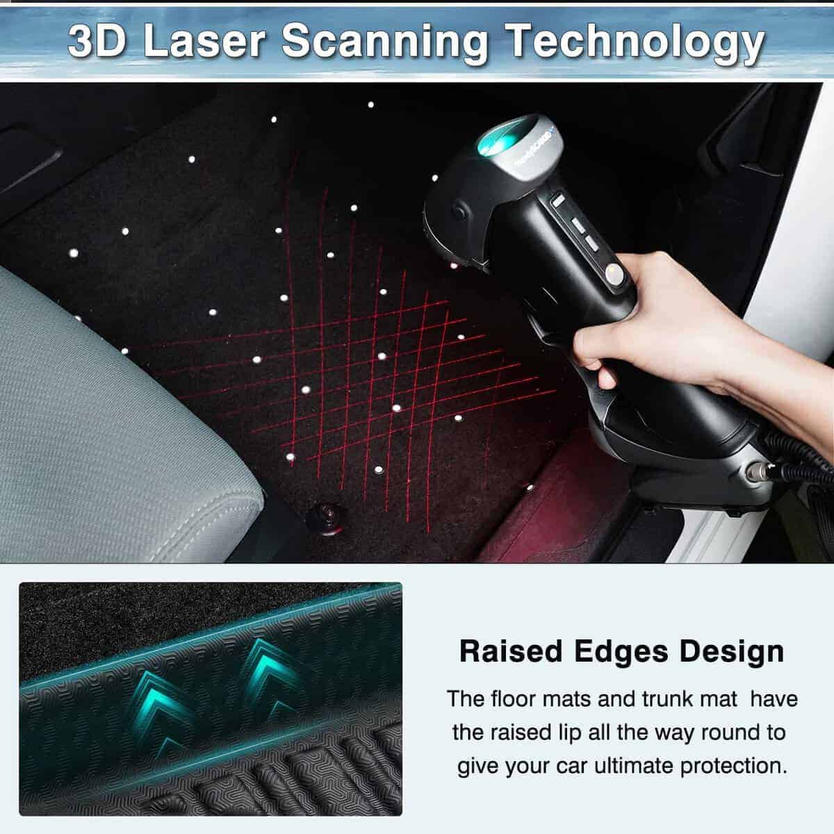 4. Borde elevado en todo el perímetro: El escaneo láser 3D digital hace que estos tapetes sean perfectamente compatibles con tu vehículo. Los tapetes tienen bordes elevados alrededor para evitar que líquidos y desechos lleguen a tu suelo original. Asegúrate de que el desorden se quede en el tapete y no en tu piso original limpio.